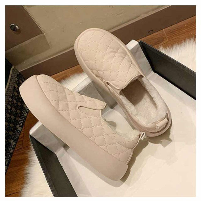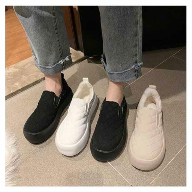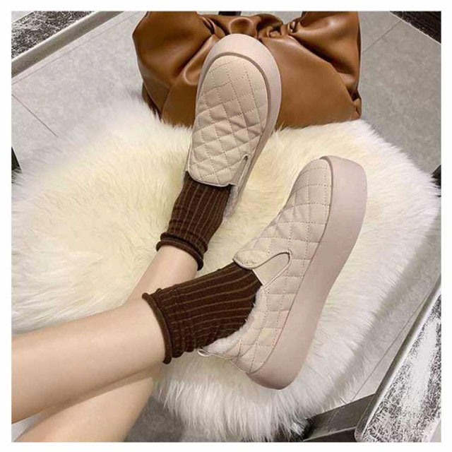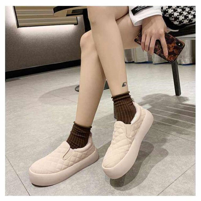 スリッポン 裏起毛 靴 女性 スニーカー ボアスリッポン もこもこ 暖かい レディース 厚底 スリッポン 秋冬靴 女性 革靴 カジュアルシューズ 通学靴 サイドゴア スニーカー 防水 防寒 暖か 保暖 保温 綿靴 防滑 おしゃ