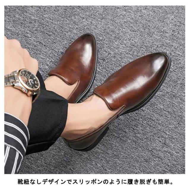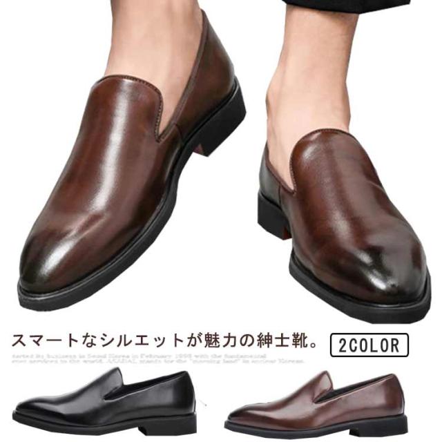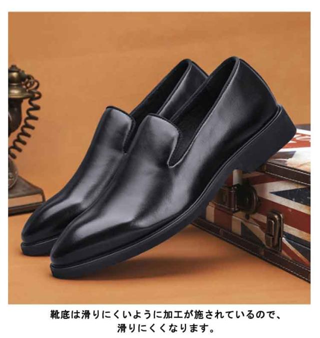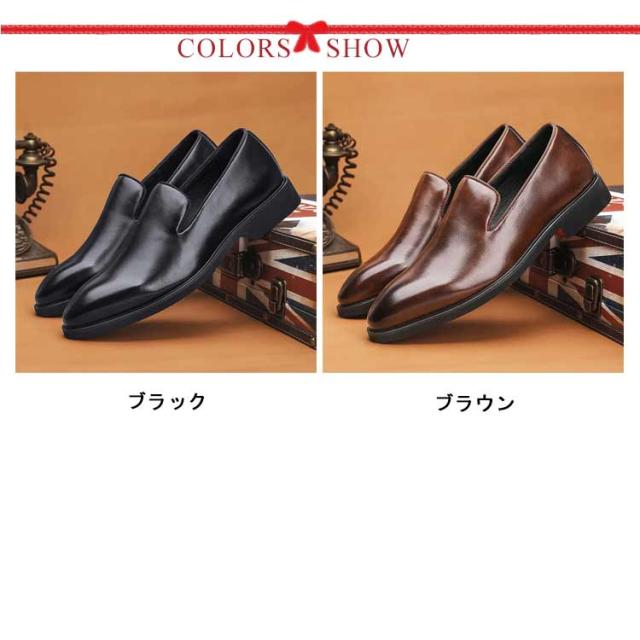 ビジネスシューズ メンズ ローファー 紳士靴 革靴 男性 ビジネスシューズ ドレスシューズ 通勤 就職 24-28.5cm 紐なし 軽量 PUレザー 結婚式 シンプル オシャレ ビジネス フォーマル ポインテッドトゥ 成人式 お祝い ブラック 茶色