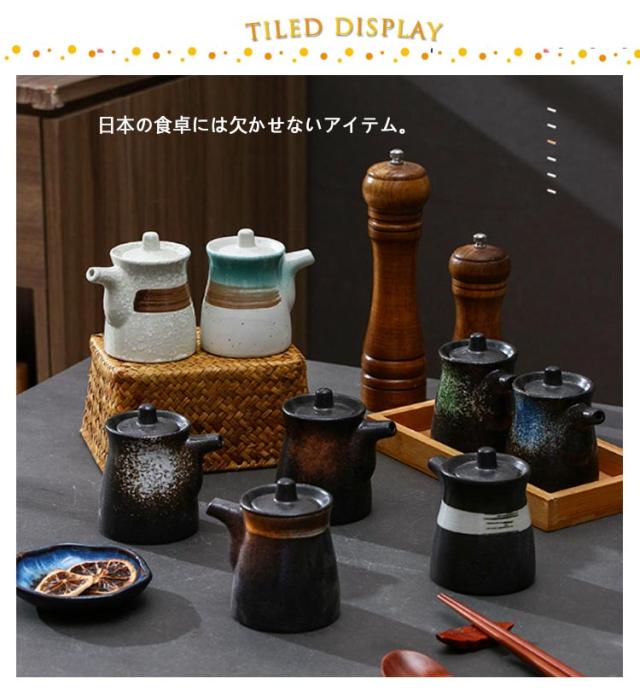 | 液もれしない和風のオシャレなしょうゆ差し! 日本の食卓には欠かせないアイテム。 食卓に置いてあるとホッと心和む存在。 | |