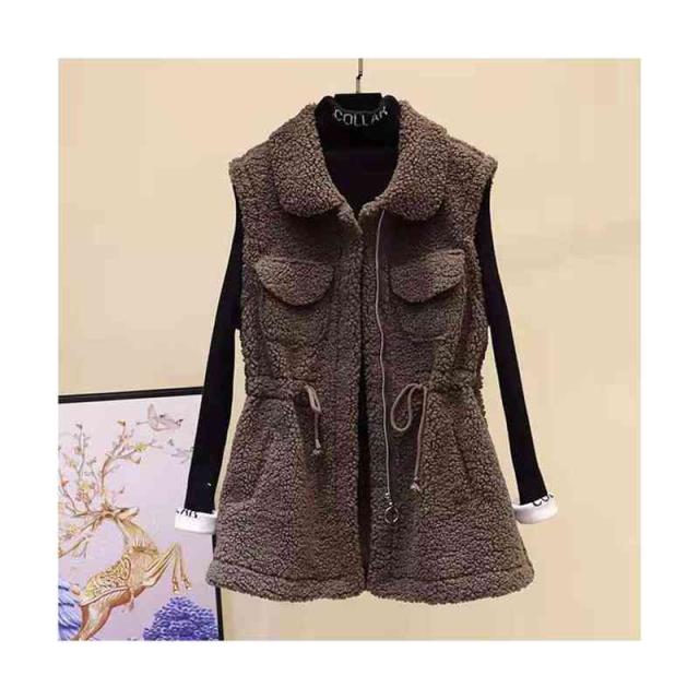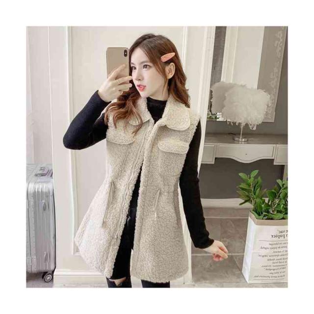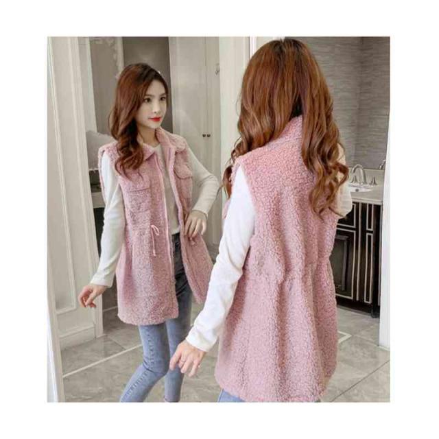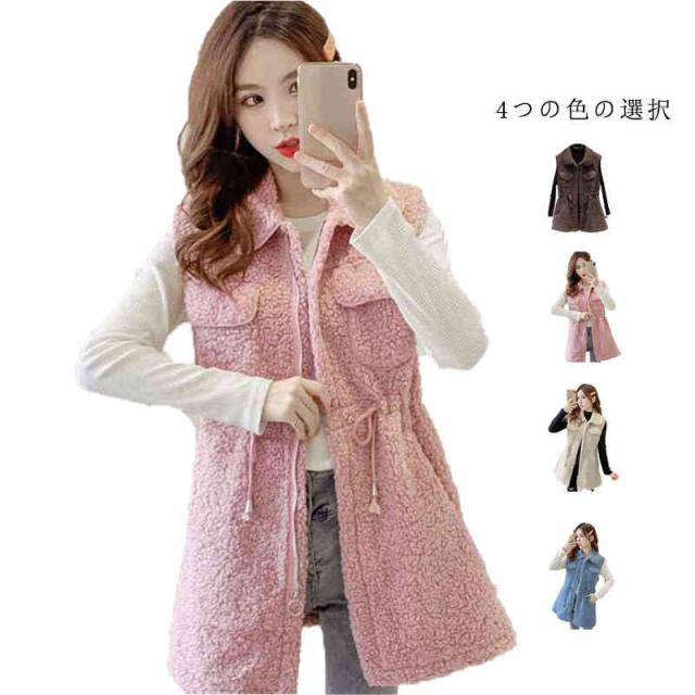 ノースリーブ ジャケット レディース 春秋冬 折襟 ウエストゴム ロングベスト かわいい ファーベスト ロング丈 裏起毛ベスト 暖かい 防寒 アウター 大人 フェミニン 送料無料 冷え対策