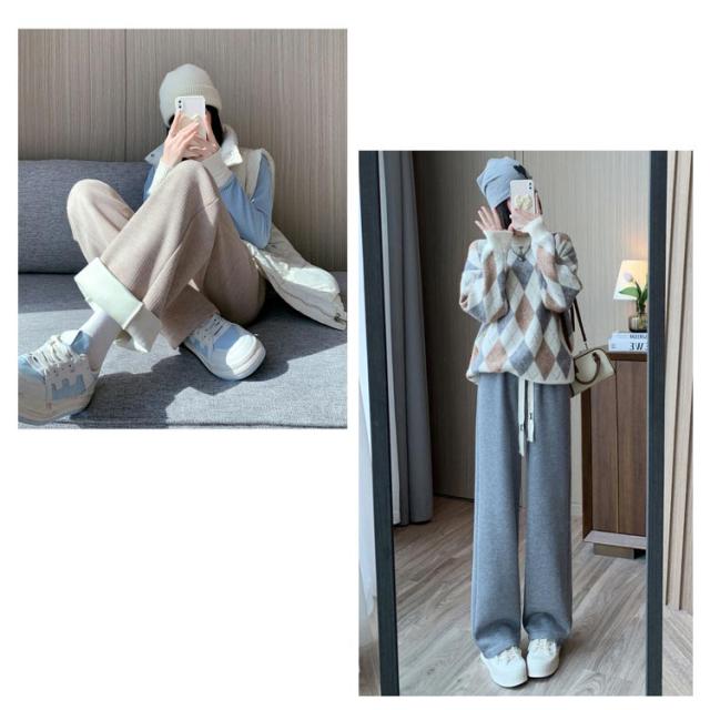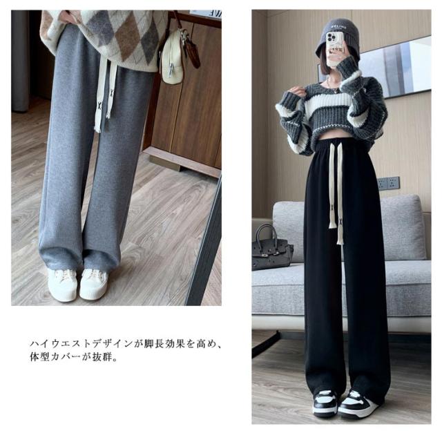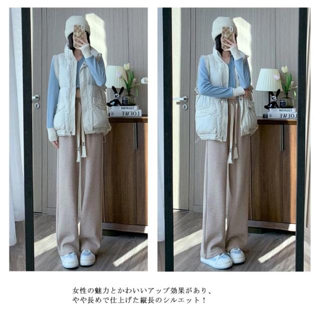 裏起毛 ワイドパンツ レディース ニットパンツ ロング パンツ カジュアルパンツ ストレートパンツ ロングパンツ 長ズボン 美脚 ウェストゴム ボトムス 大人 脚長 体型カバー ゆったり 着回し 落ち感 春 秋 冬 S M L XL