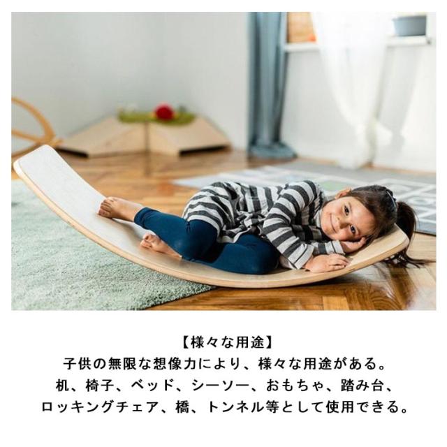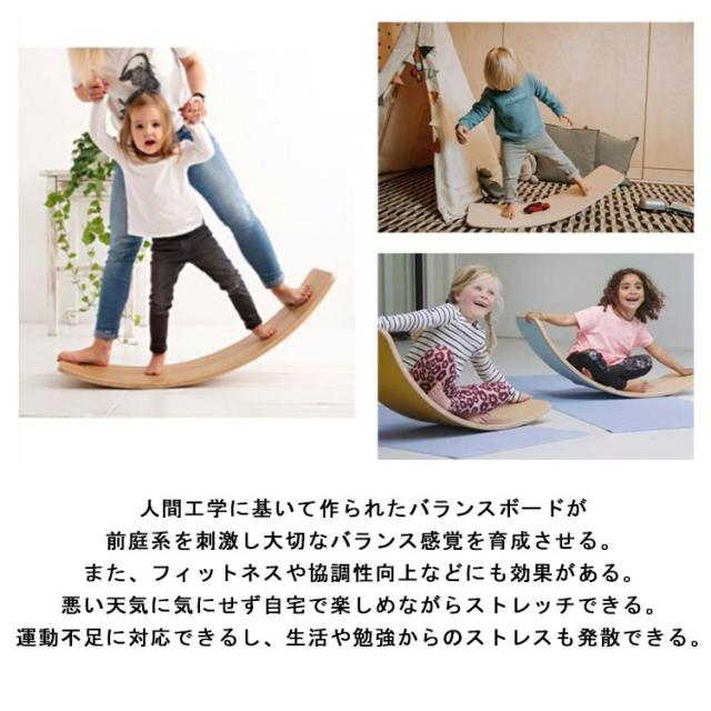 | 【バランス感覚を育む&多面効果】バランス感覚は子供ころから育む必要があるすべての感覚を育てる基礎で、感覚訓練の重要な一環。人間工学に基いて作られたバランスボードが前庭系を刺激し大切なバランス感覚を育成させる。また、フィットネスや協調性向上などにも効果がある。悪い天気に気にせず自宅で楽しめながらストレッチできる。運動不足に対応できるし、生活や勉強からのストレスも発散できる。 【滑り止め&耐摩耗性】繊細なフェルト付で耐摩耗性抜群で滑り止めができる。安全な状態で子供が楽しく遊べる。また、静音効果も付いているため、他人迷惑にならず静かに使える。 【様々な用途】子供の無限な想像力により、様々な用途がある。机、椅子、ベッド、シーソー、おもちゃ、踏み台、ロッキングチェア、橋、トンネル等として使用できる。使い方が数え切れない程おもしろいバランスボード。悪い天気に気にせず自宅で楽しめながらストレッチできる。運動不足に対応できるし、生活や勉強からのストレスも発散できる。 | |