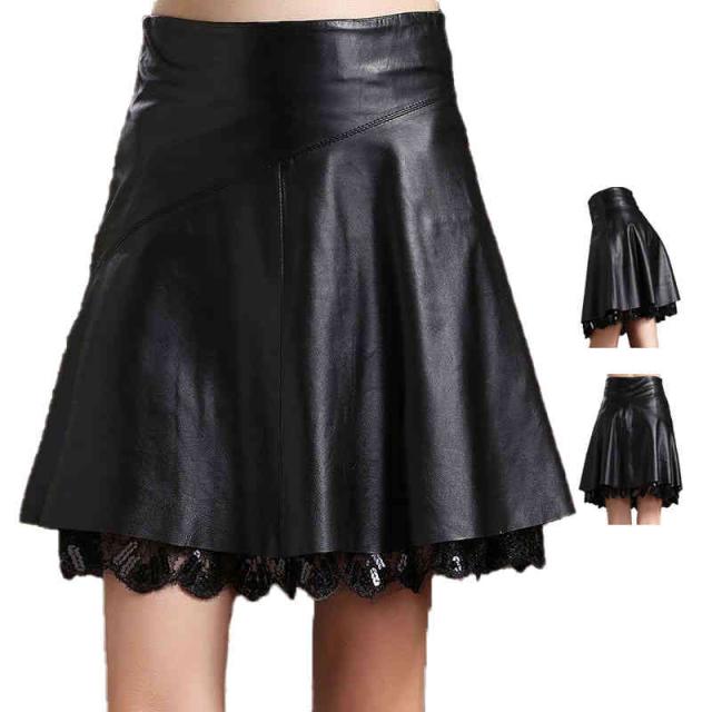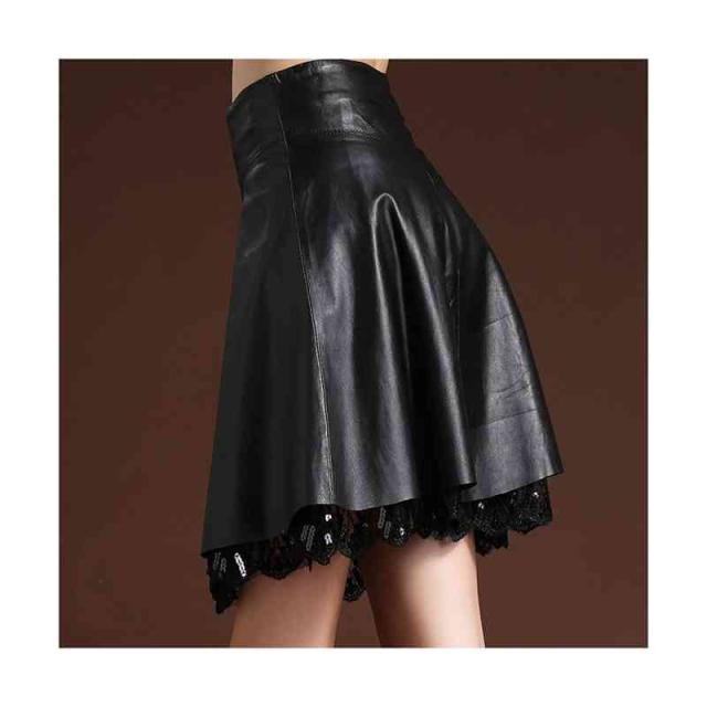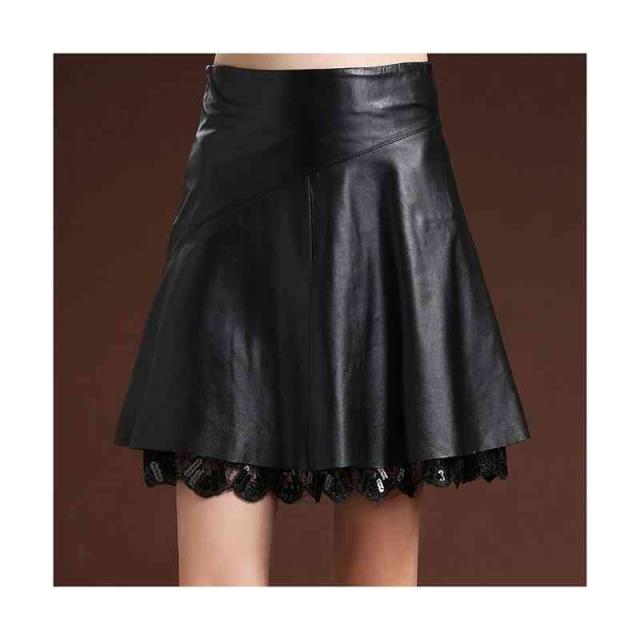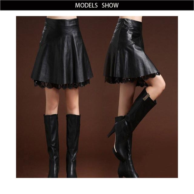 レザースカート 春秋冬 レーススカート PU ミニスカート フレアスカート Aラインフレアスカート 大きサイズ ボトムス スカート ハイウエスト プリーツスカート 無地 シンプル おしゃれ フェミニン 送料無料