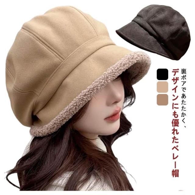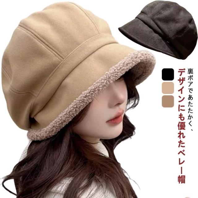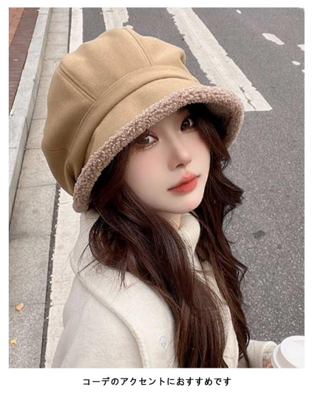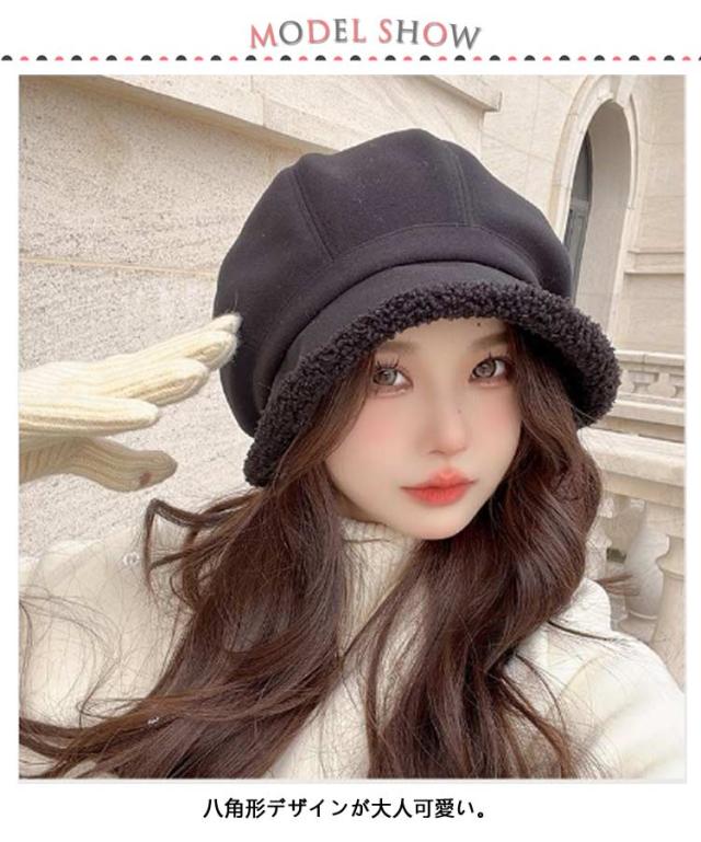 帽子 ベレー帽 キャップ ハット レディース 秋 冬 裏ボア 暖かい きれいめ シンプル 大人 かわいい 学生 通学 八角形 10代 20代 30代