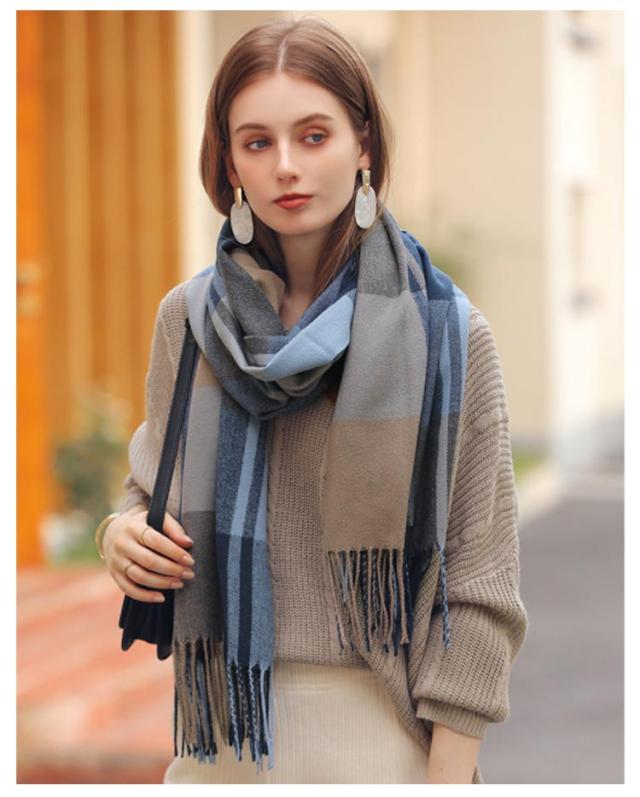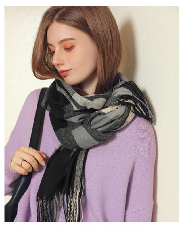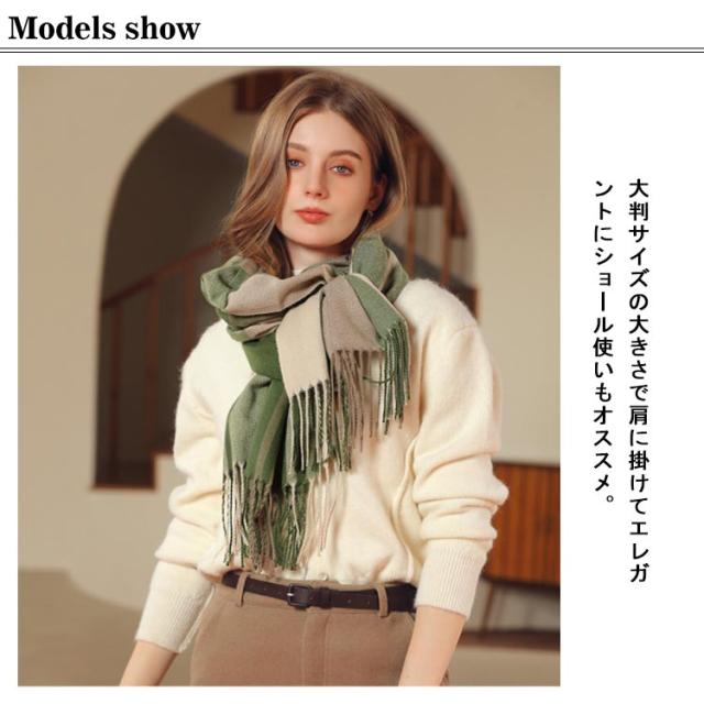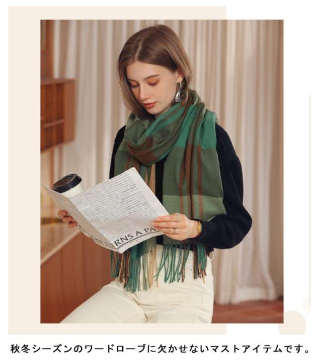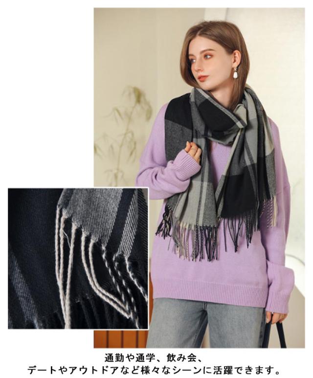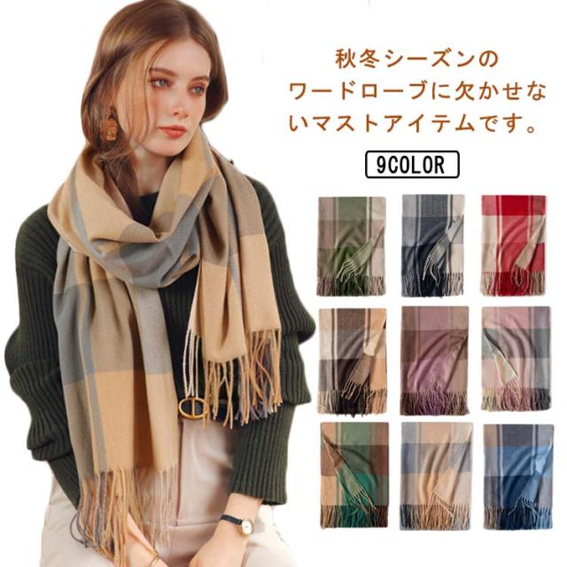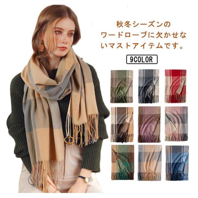 マフラー レディース ストール 大判 ショール 厚手 チェック 学生 防寒 暖かい 柔らかい 秋冬定番 フリンジ 肩掛け 膝掛け 首巻き プレゼント 新年 通勤 通学 オフィス 送料無料