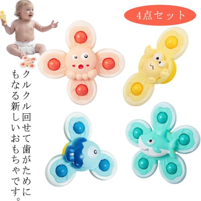 歯がため クルクル回る吸盤付き 4点セット 赤ちゃんおもちゃ クルクル ハンドスピナー 強力な吸盤付き 赤ちゃん おもちゃ 指先訓練 おふろ おもちゃ 男の子 女の子 誕生日 プレゼント ギフト