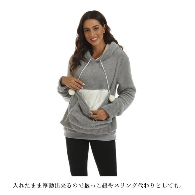 猫 パーカー 抱っこ ポケット ボアフリース 猫耳パーカー カンガルー パーカー ポケット 小動物 子犬 フード付き レディース メンズ ふわふわ もこもこ 暖かい トップス 無地 厚手 秋冬 寒さ対策