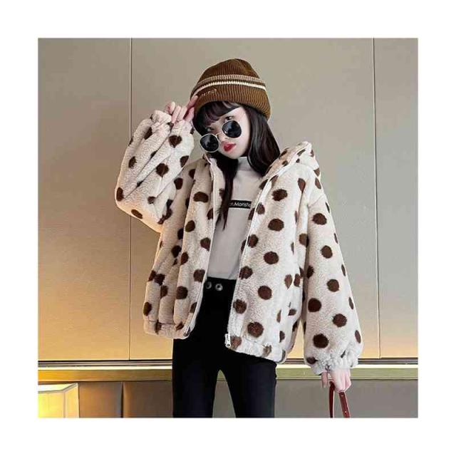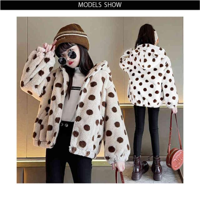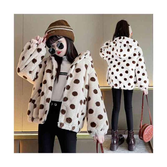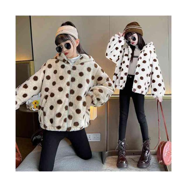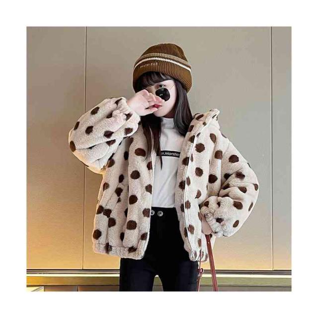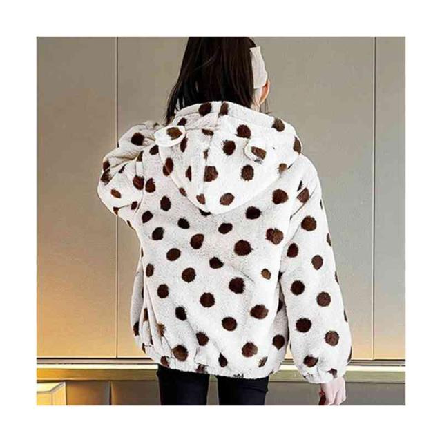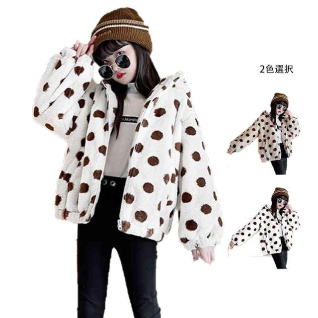 キッズ 女の子 ドット柄 フード付き ボアジャケット 秋冬 ボアジャケット フード付きジャケット ドット柄ジャケット アウター シンプル カジュアル おしゃれ 送料無料 おでかけ 暖かい 防寒 子供服