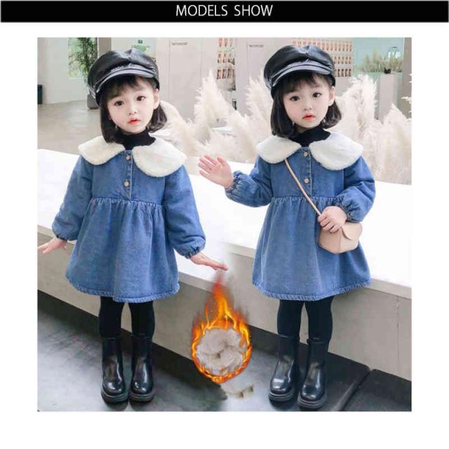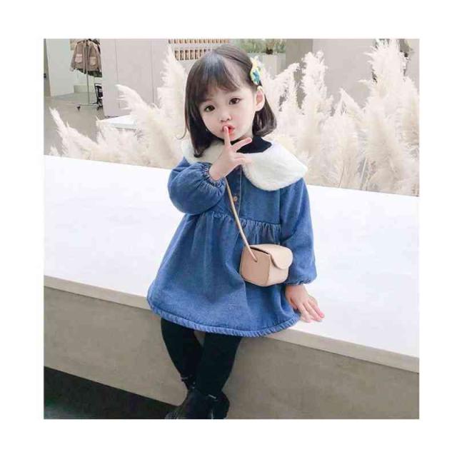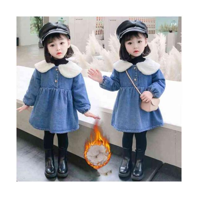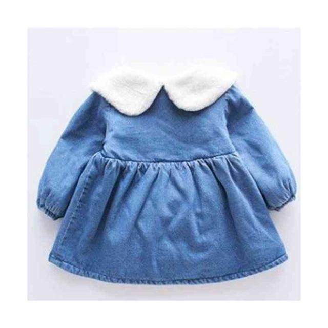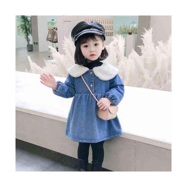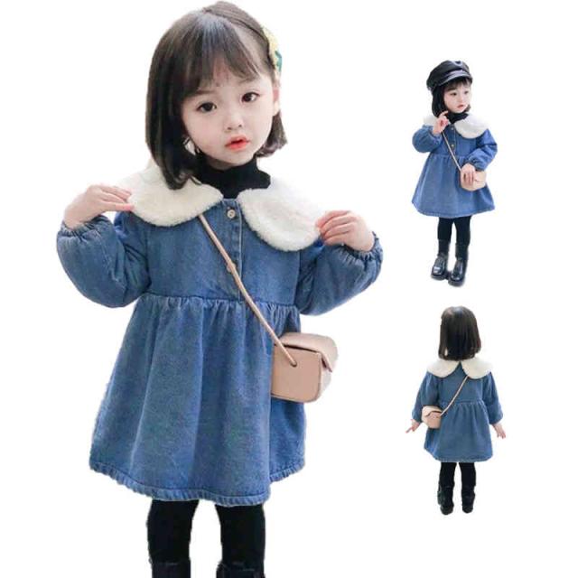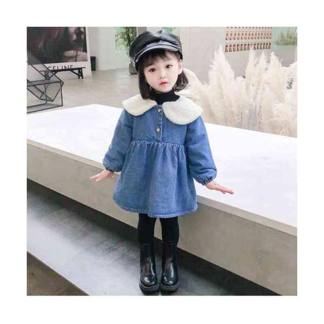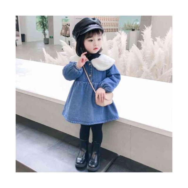 ワンピース キッズ デニムワンピース 秋冬 長袖 折襟ワンピース おしゃれワンピース ジュニア 子供服 女の子 ワンピース デニム ロングワンピース 無地 可愛い 通学 折襟 送料無料 おでかけ