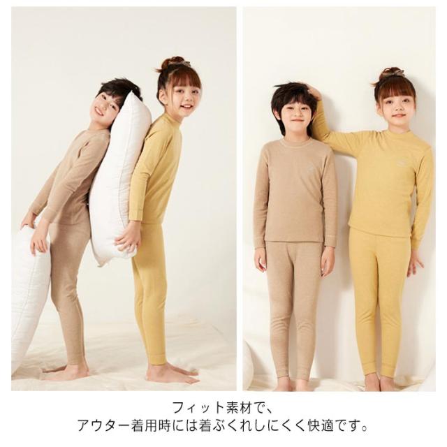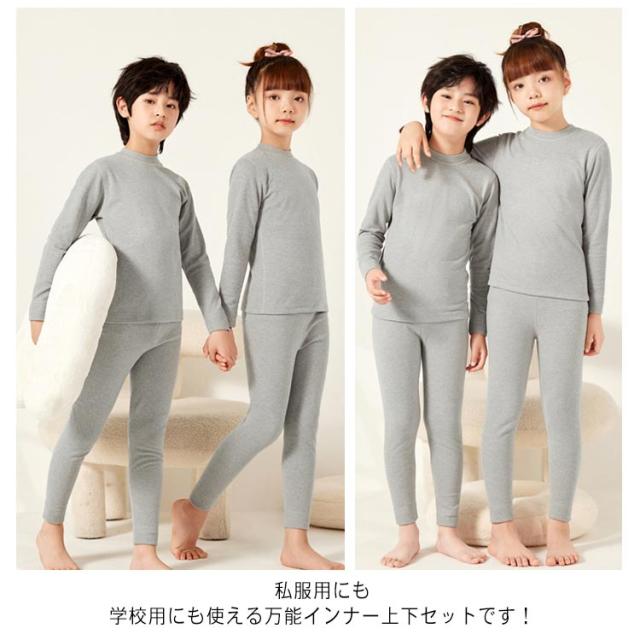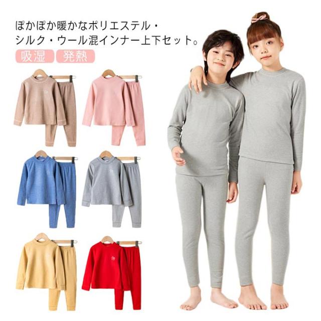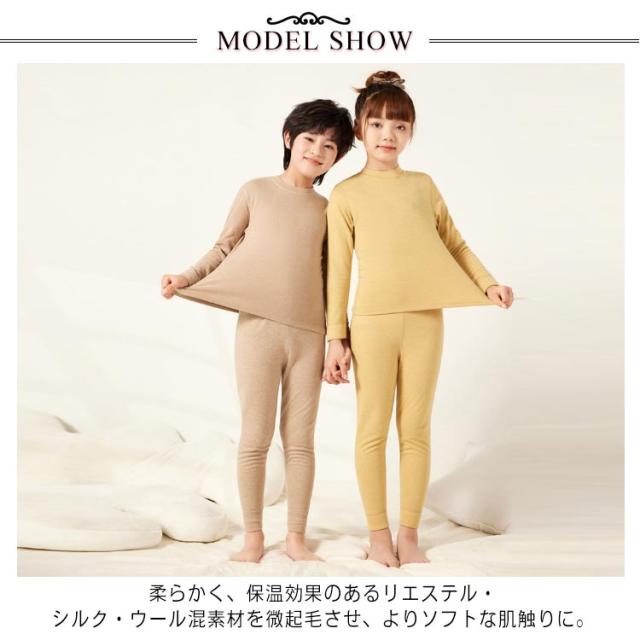 インナー Tシャツ パンツ キッズ 子供 ジュニア モックネック 長袖 インナーシャツ レギンス 上下セット シルク ウール ヒートテック 吸湿 発熱 保温 アンダーシャツ ストレッチ 女の子 男の子 子ども あったか 防寒 肌着 下着 通園 通学 寒さ対策 秋冬 冬 ジュニア 子供服