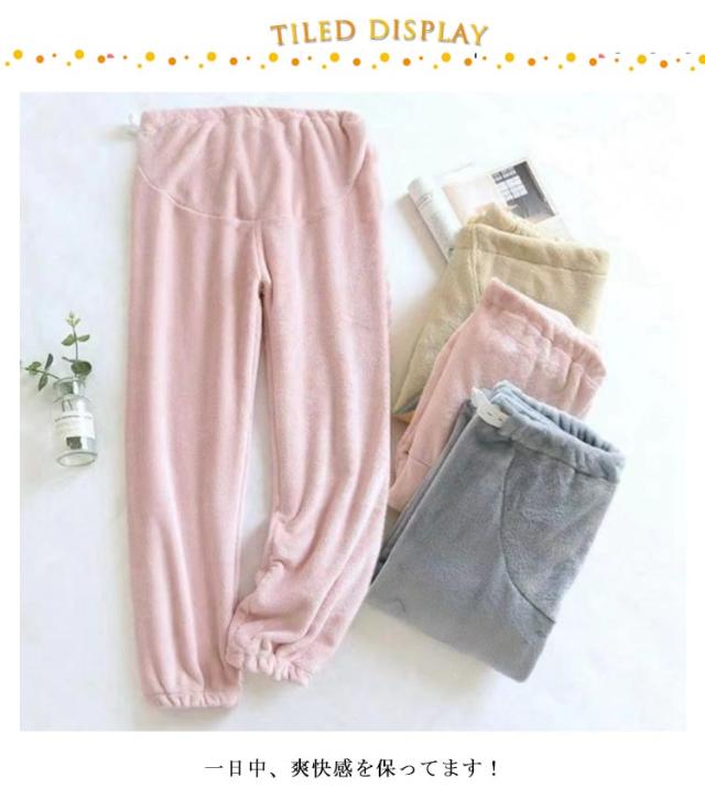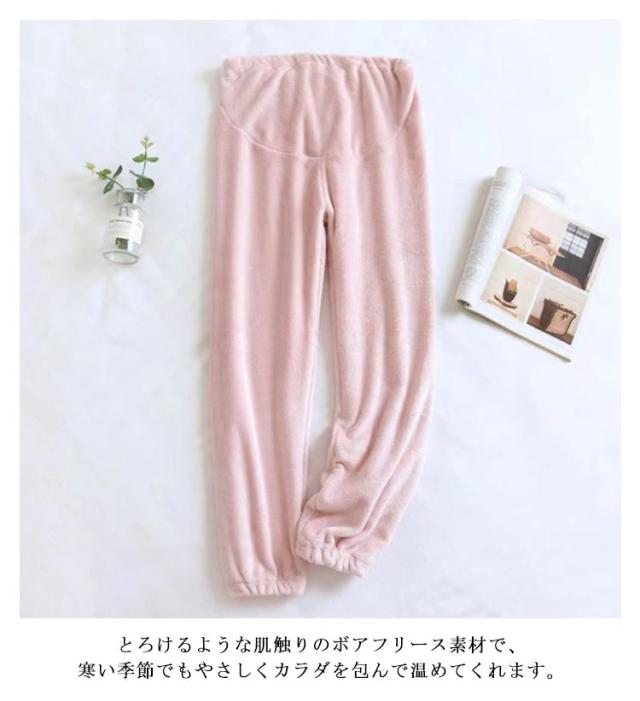 もこもこ マタニティ ルームパンツ パジャマ ゆったり ふわふわ ウエスト調整可能 無地 可愛い 大きいサイズ リラックス 暖かい あったか 長ズボン 冬 秋 春