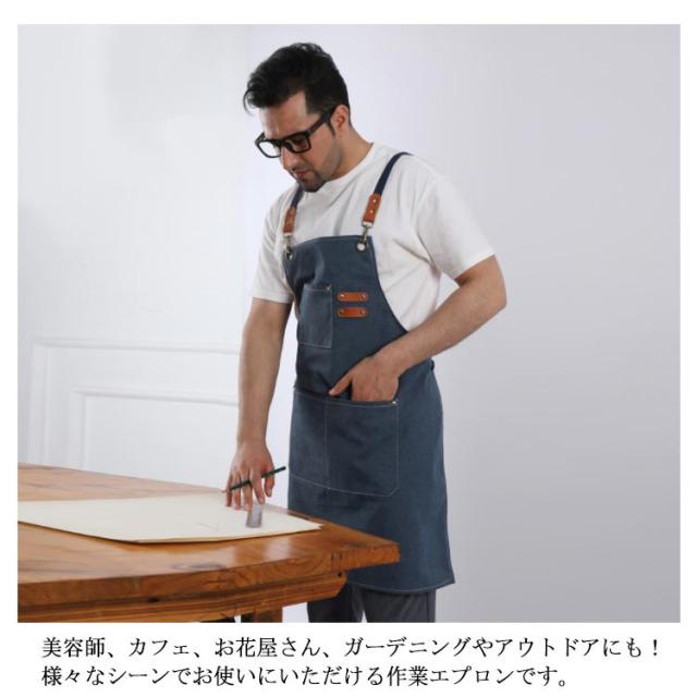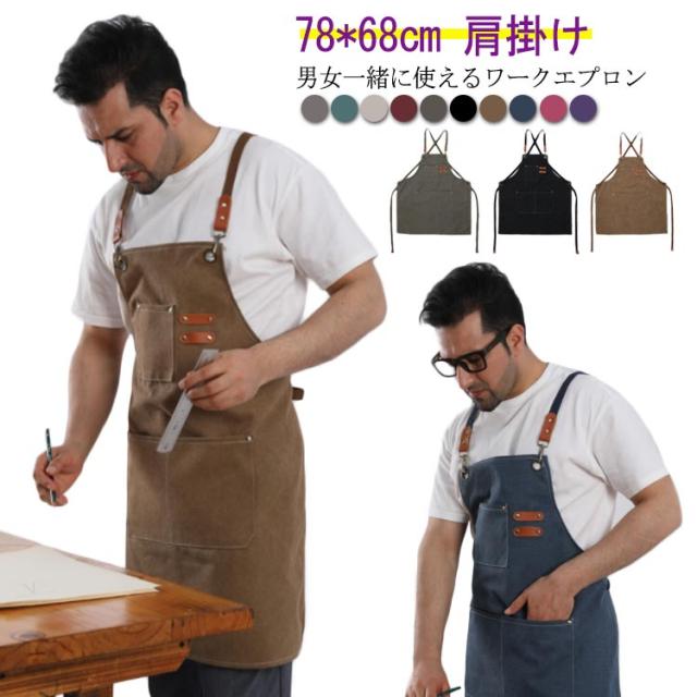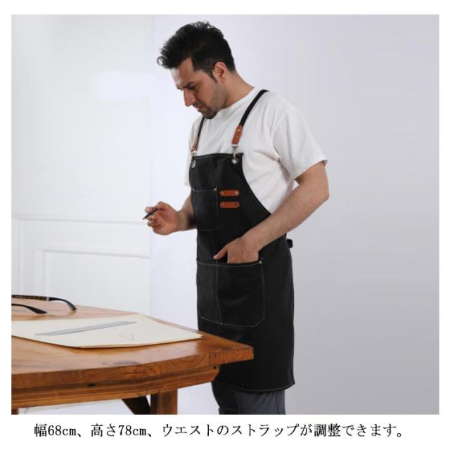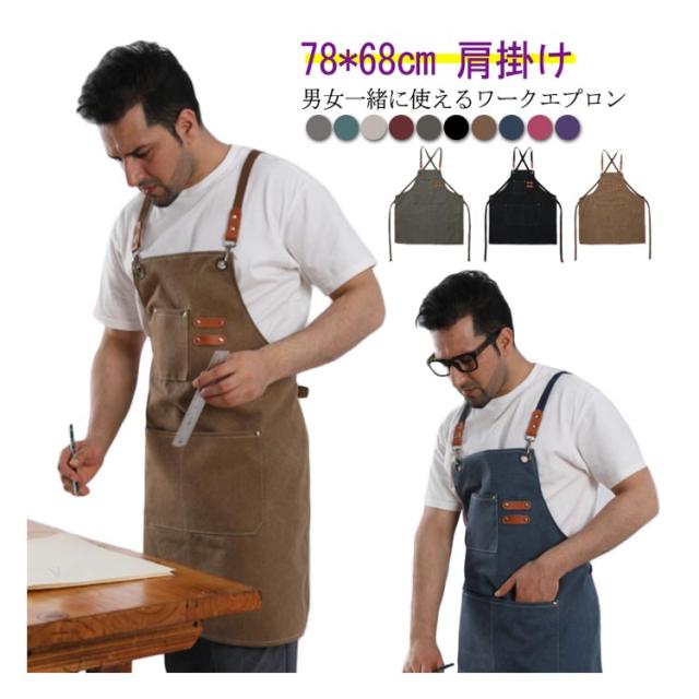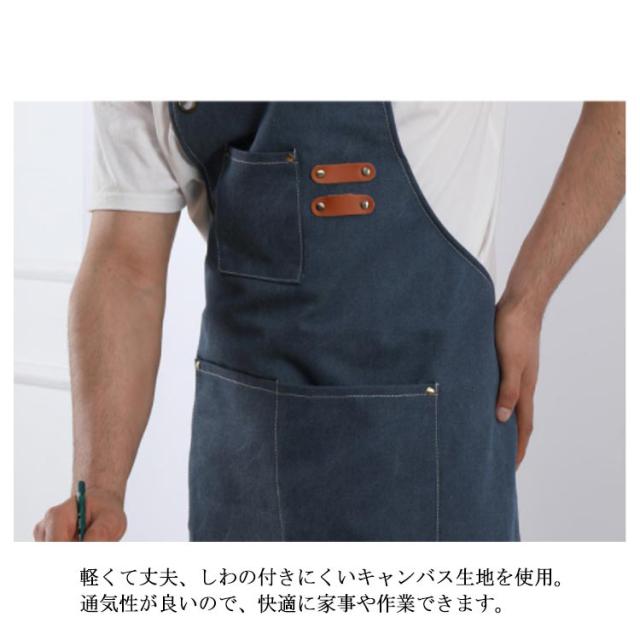 ワークエプロン おしゃれ メンズエプロン レディース 作業用 ストラップ調整可能 男女兼用 キャンバス 肩掛け 防汚撥水 丈夫 複数ポケット 作業 エプロン シンプル 業務用 家庭用 無地 DIY 保育士 レストラン 飲食店 キッチン カフェ 厨房 ギフト 送料無料