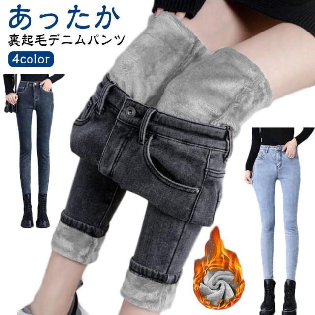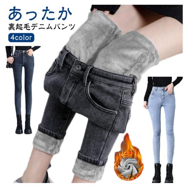 デニムパンツ 裏起毛 レディース スキニーパンツ?ハイウエスト ジーンズ パンツ デニム スキニー 裏起毛パンツ 防寒 ストレッチ 伸びる 大きいサイズ ボトムス 暖かい ジーパン あったかい 美脚見せ 秋冬 シンプル スキニーデニム?極暖 厚手