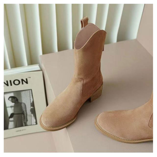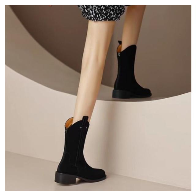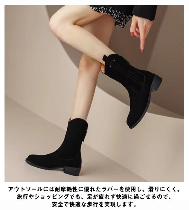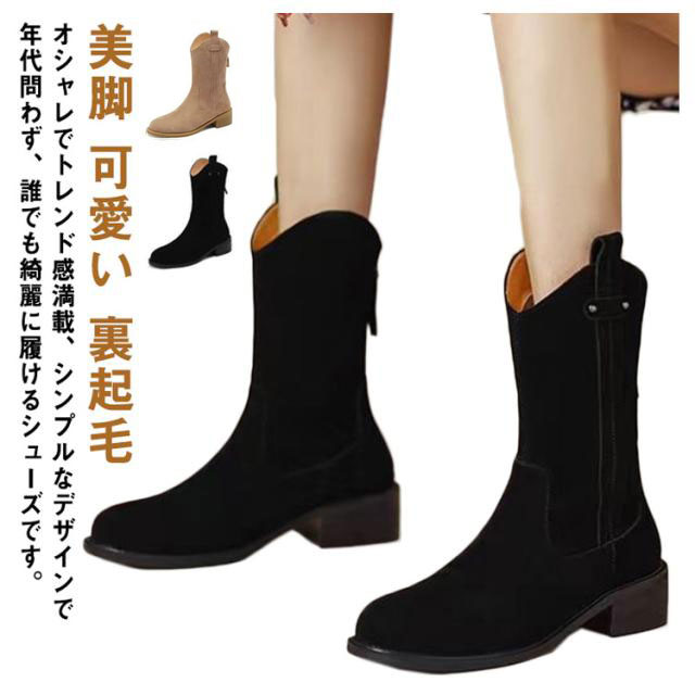 ショートブーツ レディース 厚底シューズ 美脚 歩きやすい 裏起毛 ミドルブーツ ショート ブーツ 厚底 ローヒール スエード 太ヒール おしゃれ 防滑 靴 冬 ぺたんこ 秋冬 シンプル カジュアル 可愛い 黒 ブラック ブラウン