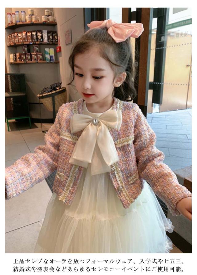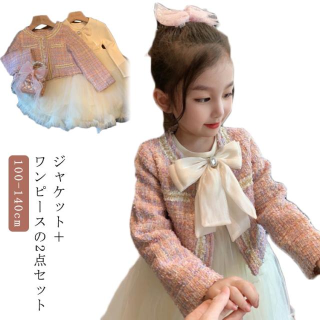ツイード アンサンブル+ワンピース 2点セット 140 フォーマル 女の子 入学式スーツ キッズ 小学生 ジャケット 100 七五三 入学式 卒業式 スーツ セットアップ 子供服 入園式 卒園式 発表会 お誕生日