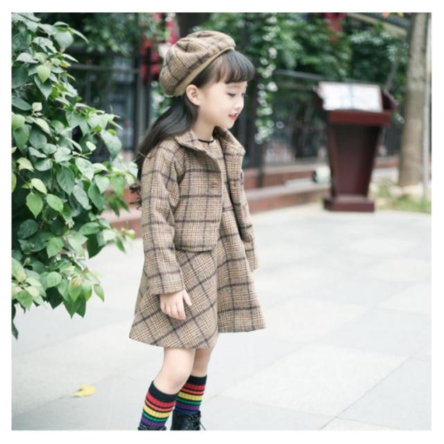 入学式スーツ 女の子 子供服 卒園式 ワンピース ボレロ セットアップ ジャケット アンサンブル ベレー帽 チェック柄 秋 冬 服 厚手 パーティー 結婚式 フォーマルスーツ 発表会 お宮参り 七五三 90 100 110 120 130cm