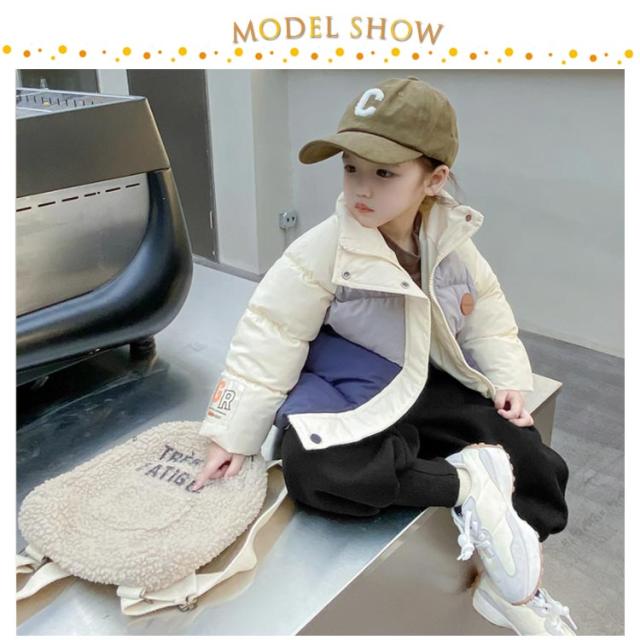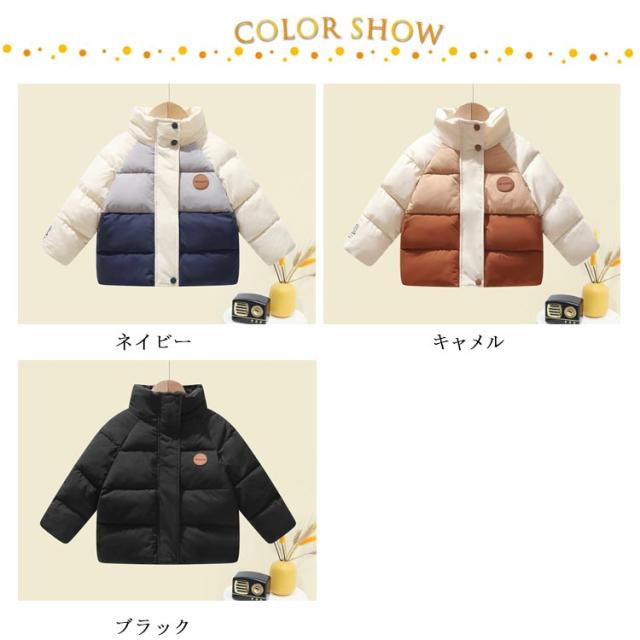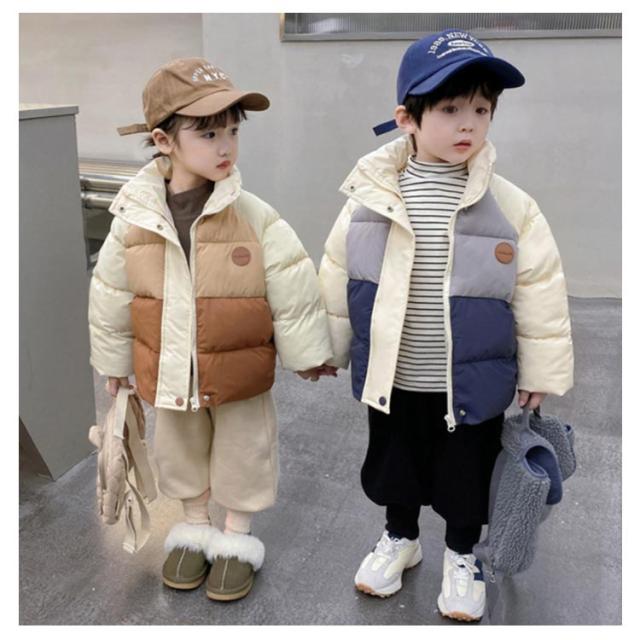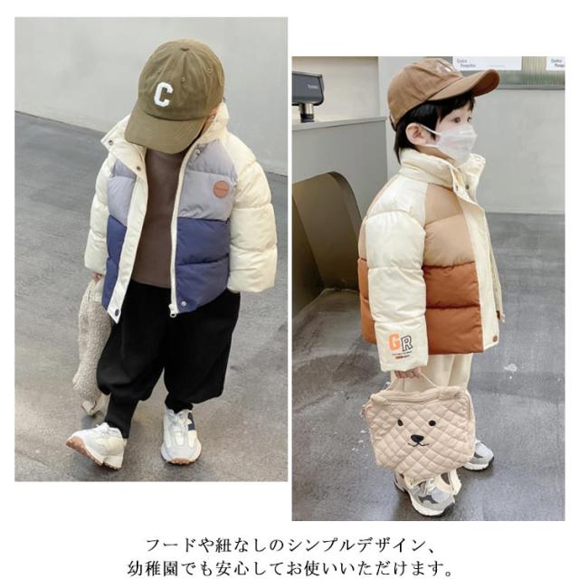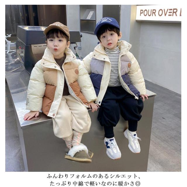 中綿コート ショート丈 コート キッズ 100 110 120 130 140cm 女の子 男の子 配色 アウター 中綿ジャケット 立ち襟 厚手 防寒 保温 冬服 韓国 オシャレ 防風 暖かい