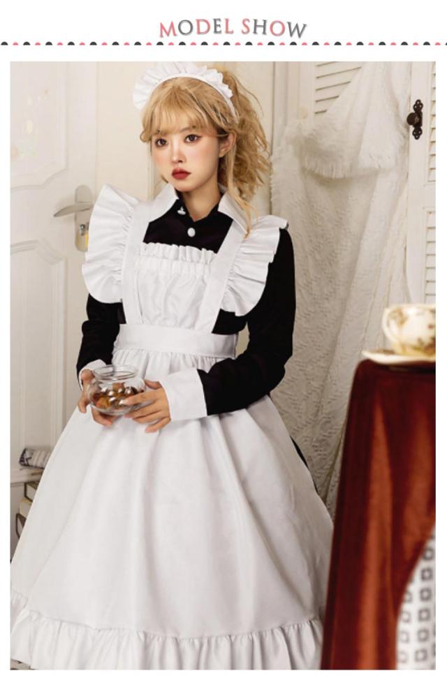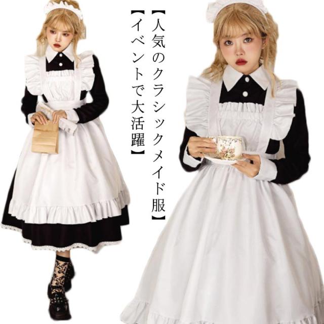 英國風 メイド 可愛い メイド服 コスプレ衣装 制服 長袖 カチューシャ付き 喫茶店 仮装 カフェ 文化祭 エプロン レディース ロリータ フリル ハロウィン メイド服 撮影 学園祭 イベント パーティー コスチューム クラシカル 送料無料