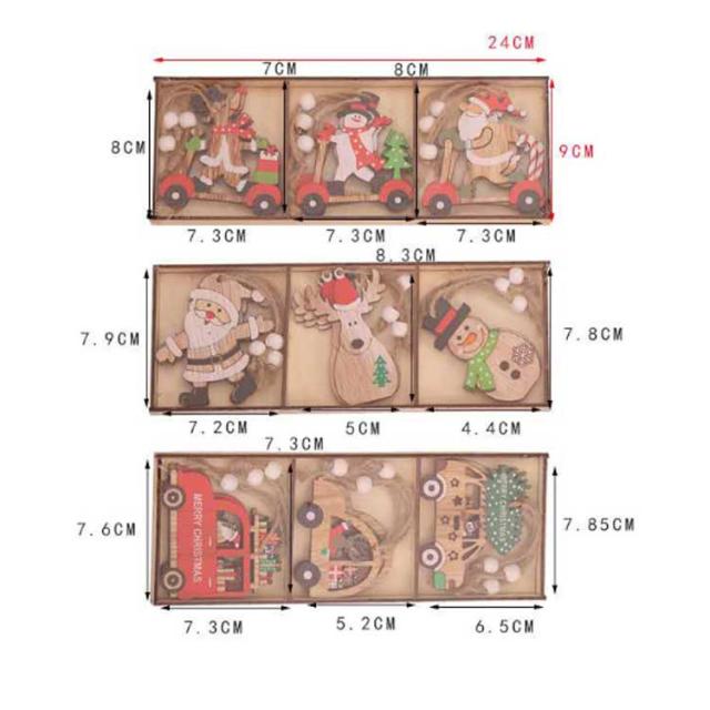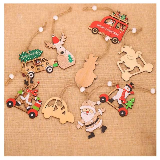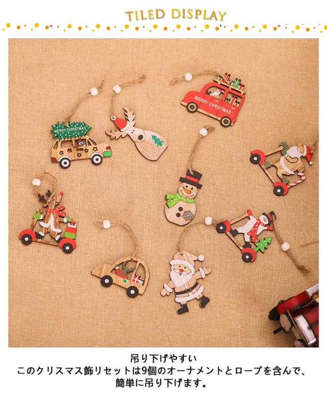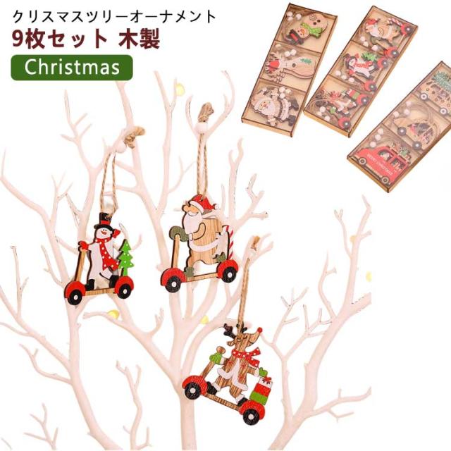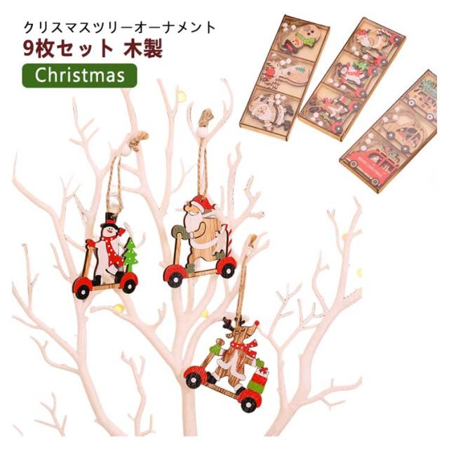9個セット 2023 クリスマス クリスマスツリー オーナメント 木製 クリスマス 飾り 飾り付け サンタさん トナカイ 雪だるま 車 6種類 デコレーション ド 季節用品 玄関 庭 置物 装飾 クリスマス プレゼント かわいい 子供 おもちゃ Christmas ornament Xmas tree 樅