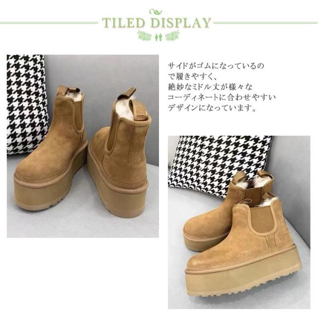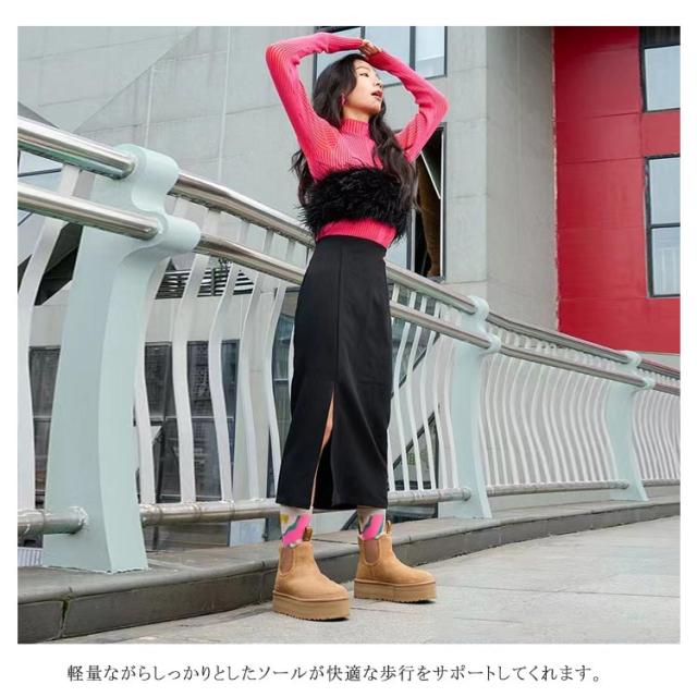 厚底 ムートンブーツ レディース 裏ボア ブーツ スノーブーツ 裏起毛 ウインターブーツ ショートブーツ ミディアム丈 大きいサイズ 暖かい 軽い 撥水 防水 防寒 防風 冬 もこもこ 滑りにくい 厚底 歩きやすい 黒 靴 長靴 サイドゴアブーツ 雪靴