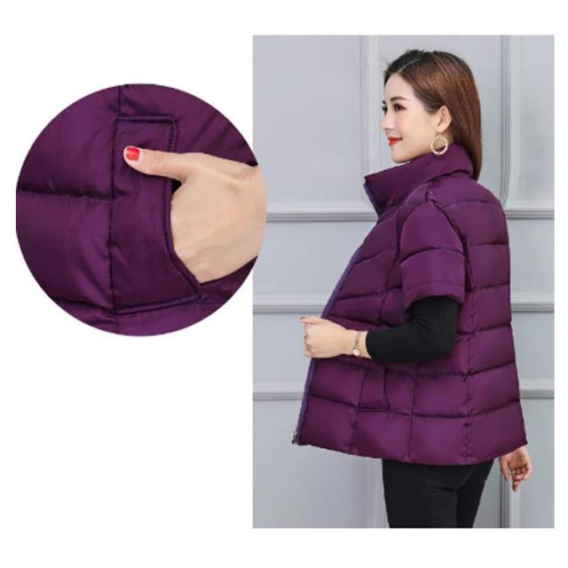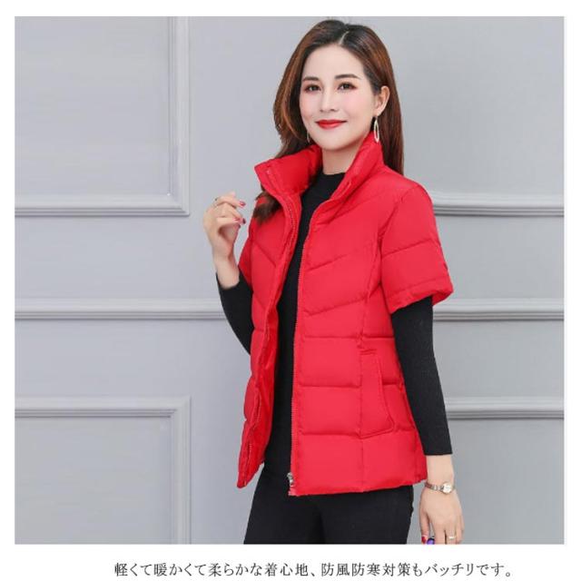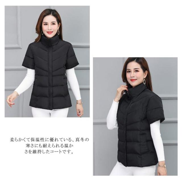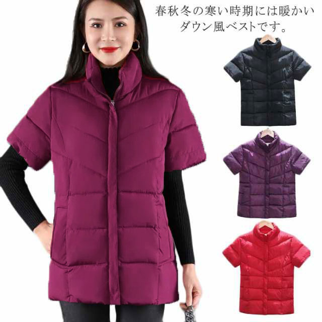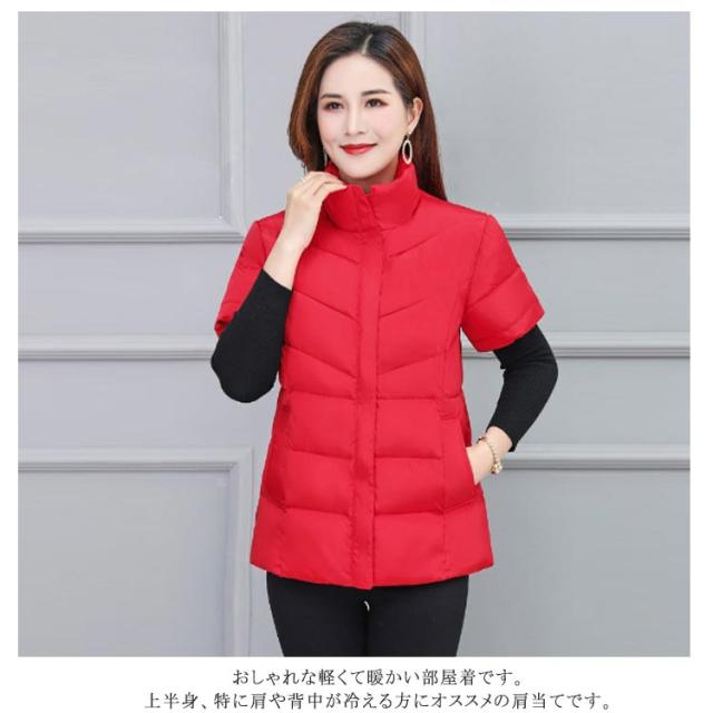 ダウン風ベスト レディース 秋冬 暖かい 半袖 ダウン風ジャケット 立ち襟 スタンドカラー 肩当て 冷え対策 寒さ対策 肩 ウォーマー 防風 合わせやすい 中綿ベスト 防寒 暖かい アウター 上着 軽量 保温 敬老の日 プレゼント シンプル 通勤 通学 40代 50代 60代 70代