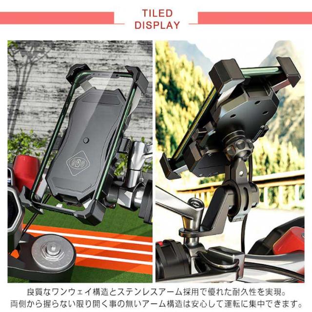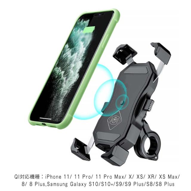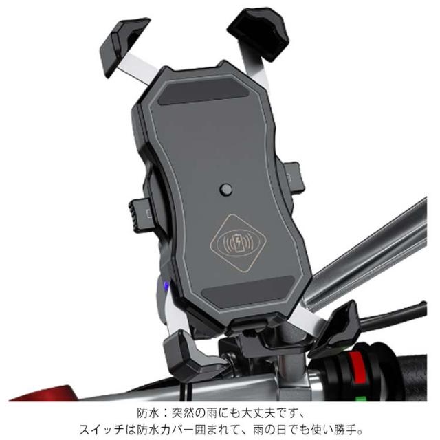 バイク スマホホルダー QI ワイヤレス充電 防水 USB 電源 携帯 ホルダー 置くだけ 充電 ワイヤレス バイク用 iphone galaxy QI 最大 15W USB QC3.0 充電器