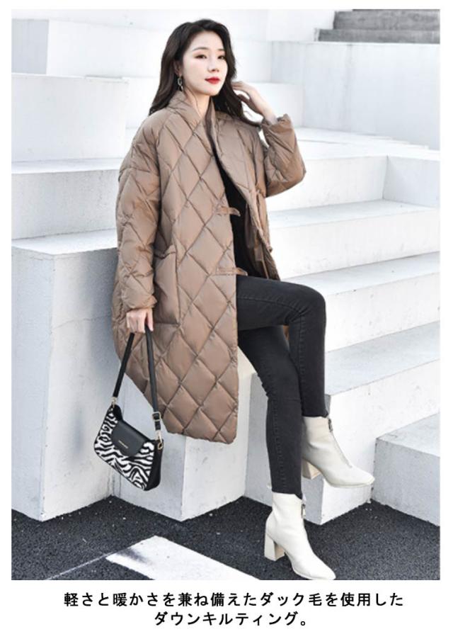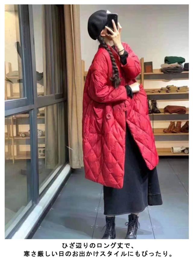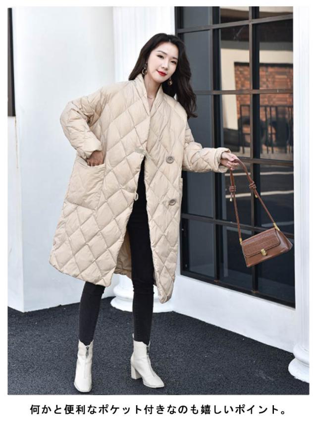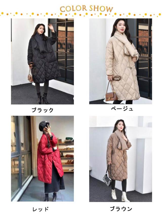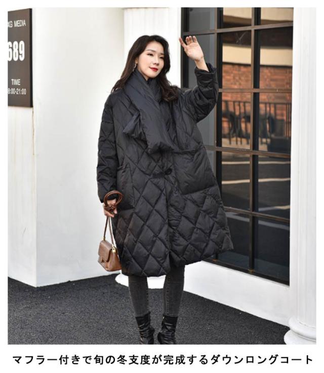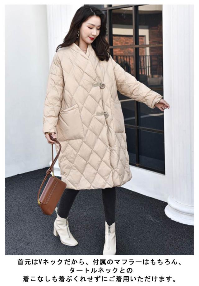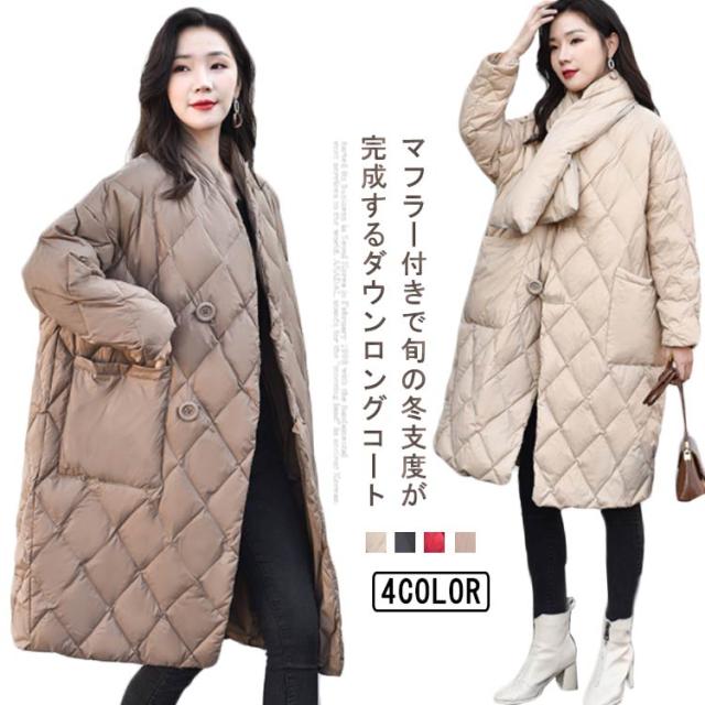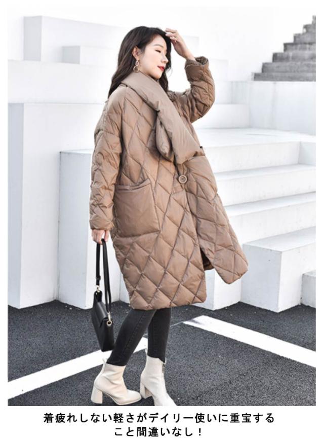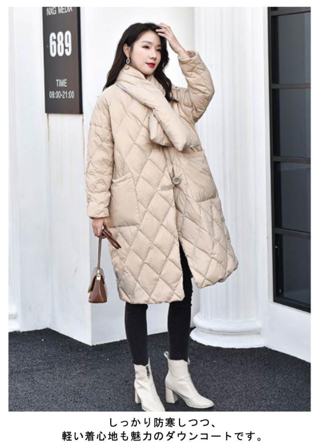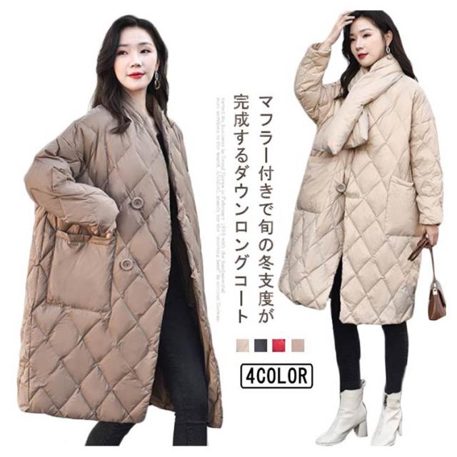 マフラー付きダウンコート ノーカラー ダウンジャケット ロング丈 軽量 あたっか アウター 秋冬 レディース ダウンロングコート マフラー付き オーバーサイズ 襟なし 通勤 通学 カジュアル 防寒 大人可愛い 韓国風【送無】