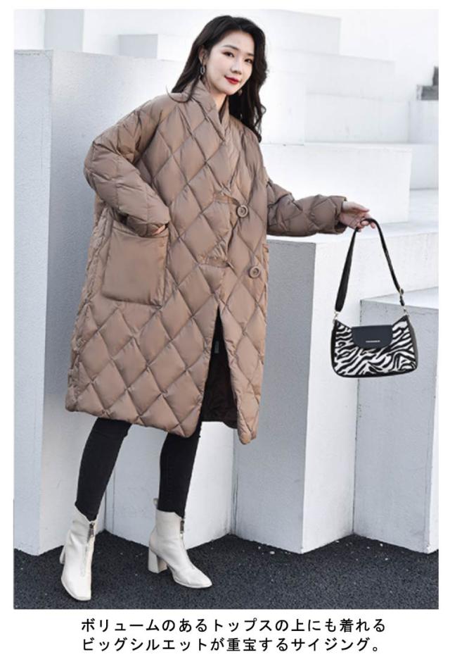| マフラー付きで旬の冬支度が完成するダウンロングコート ひざ辺りのロング丈で、寒さ厳しい日のお出かけスタイルにもぴったり。 首元はvネックだから、付属のマフラーはもちろん、タートルネックとの着こなしも着ぶくれせずにご着用いただけます。 ボリュームのあるトップスの上にも着れるビッグシルエットが重宝するサイジング。 軽さと暖かさを兼ね備えたダック毛を使用したダウンキルティング。 着疲れしない軽さがデイリー使いに重宝すること間違いなし! 何かと便利なポケット付きなのも嬉しいポイント。 しっかり防寒しつつ、軽い着心地も魅力のダウンコートです。 | |
