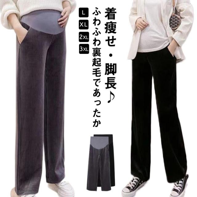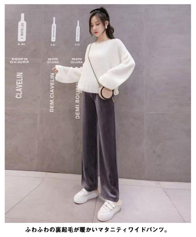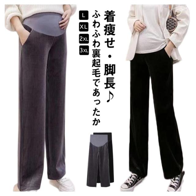マタニティ パンツ ワイドパンツ マタニティパンツ 裏起毛 裏ボア 美脚 ストレッチパンツ コーデュロイ ポケット付き 防寒 ゆったり 秋冬 リブ ガウチョパンツ 厚手 産前 産後 臨月 ルームウェア オフィス フォーマル