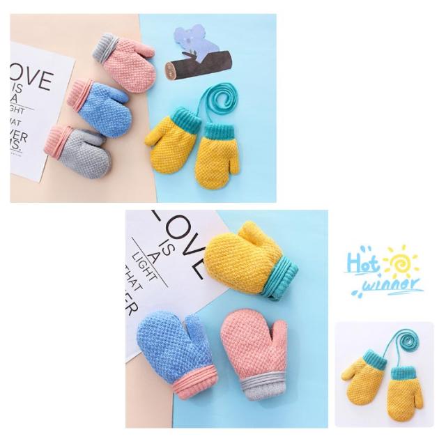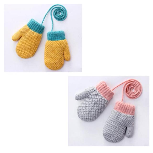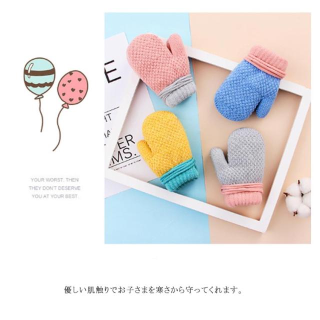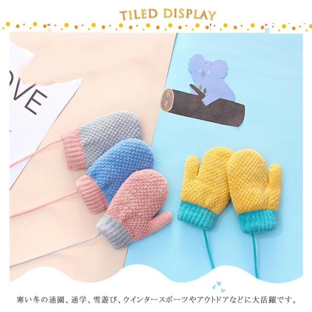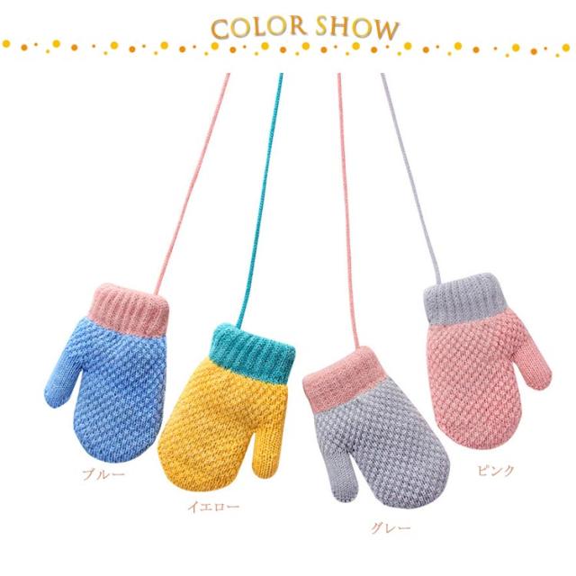 手袋 キッズ グローブ ミトン型 かわいい 裏ボア ひも付き ベビー 全4色 ニット 手ぶくろ 子供用 女の子 男の子 男女兼用 幼児 てぶくろ 1-3歳 ミトン 紐 あたたかい 裏起毛 おしゃれ 通学 通園 雪遊び 送料無料