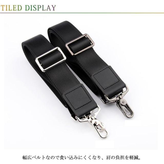 | 交換用ショルダーベルト/肩掛けひもです。 幅広ベルトなので食い込みにくくなり、肩の負担を軽減。 ベルト部分は高品質で丈夫なナイロン素材を使用。 お手持ちのベルトと交換するだけで見栄えが激変します。 | |