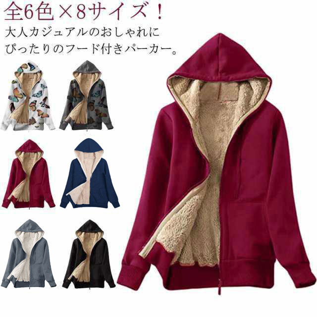 裏ボア パーカー レディース 裏起毛パーカー もこもこ 大きサイズ ボア アウター 秋冬 もこもこ パーカー ブルゾン フード付き ふわふわ ジップアップパーカー 無地 暖かい ゆったり カジュアル 大人可愛い 秋冬 冬 クリスマス ギフト