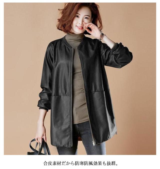 春コート ノーカラーコート フェイクレザー ロングコート レザーコート レディース アウター トレンチコート ノーカラー スタジャン PU 合皮 ジャケット コート ミドル丈 春秋用 30代 40代 50代 大きサイズ 6L 7L