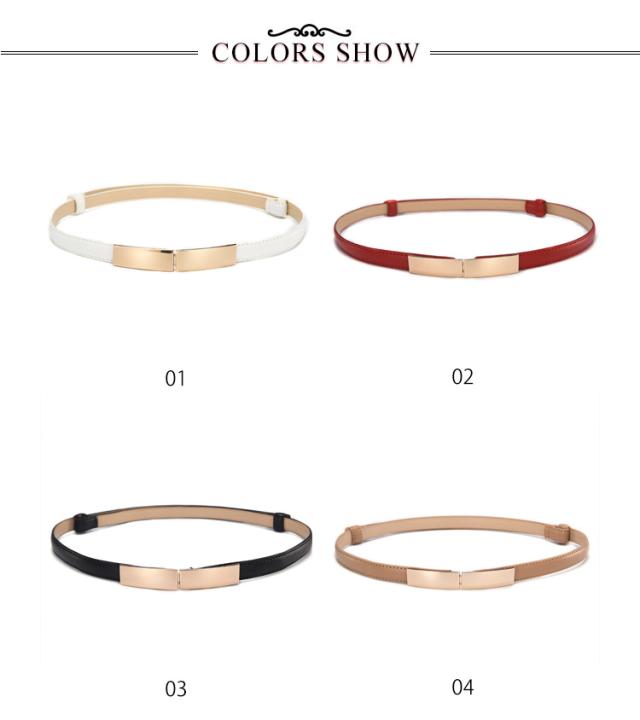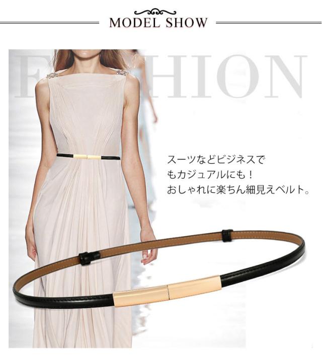 | 大人の上品コーデを後押ししてくれる華奢見えベルト。 スーツなどビジネスでもカジュアルにも!おしゃれに楽ちん細見えベルト。 着脱が簡単でパンツやスカート・ワンピースなどに合わせやすい サイズはフリー調整可能!サイズオーバーのボトムスの丈調節にも使えます。 薄い色のゴールドバックルがすべてのコーデに絶妙なアクセントをカジュアルダウンもOK! チュニックやシャツの上からゆるめに合わせたり、その日のコーディネートに合わせてニュアンスの調整もできます。 | |