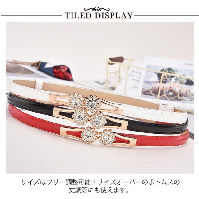 選べる19タイプ ベルト レディース 細い 無段階調整 スライドベルト フック式 金具 飾りベルト puレザー 細ベルト ウエストベルト ビットベルト ウエストマーク アジャスター 調節 仕事 ワンピース スーツ プレゼント