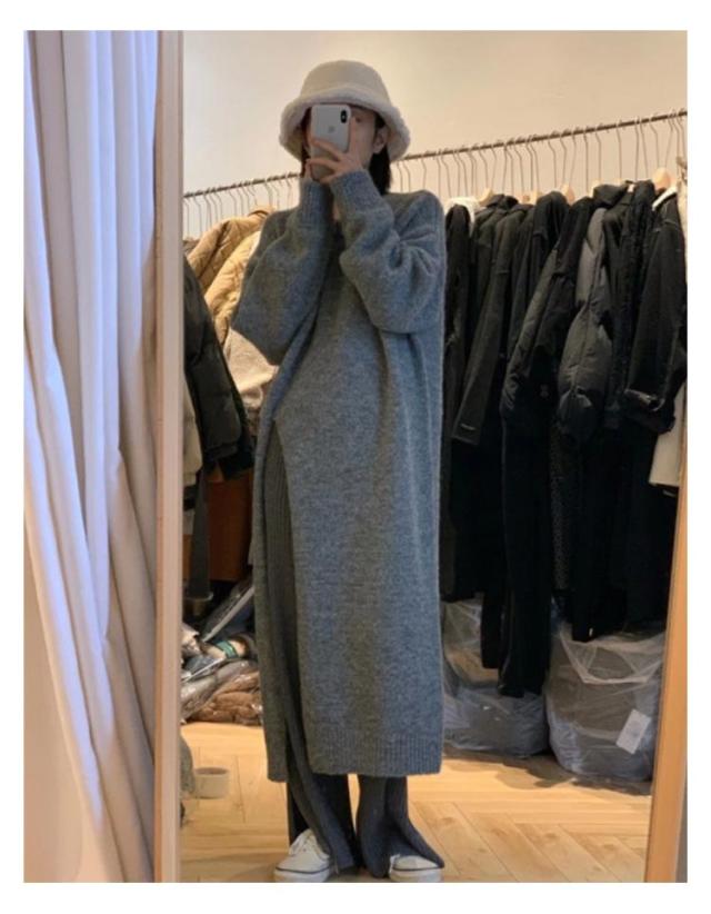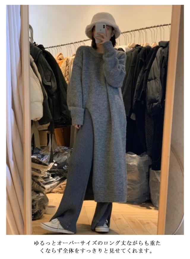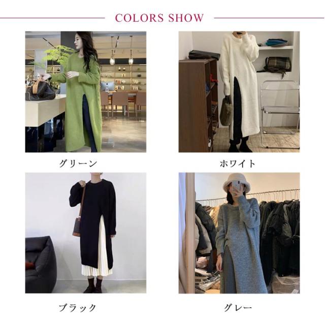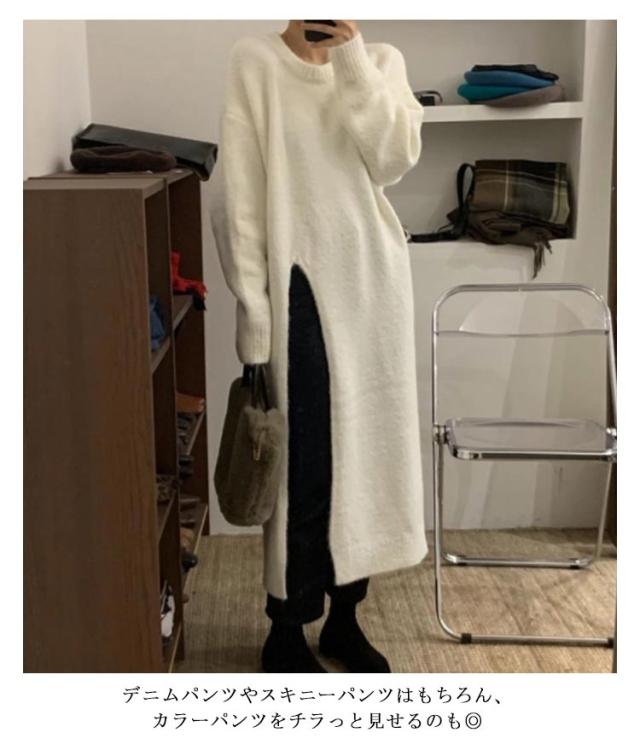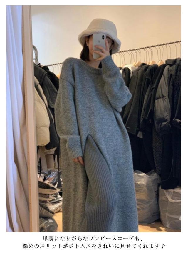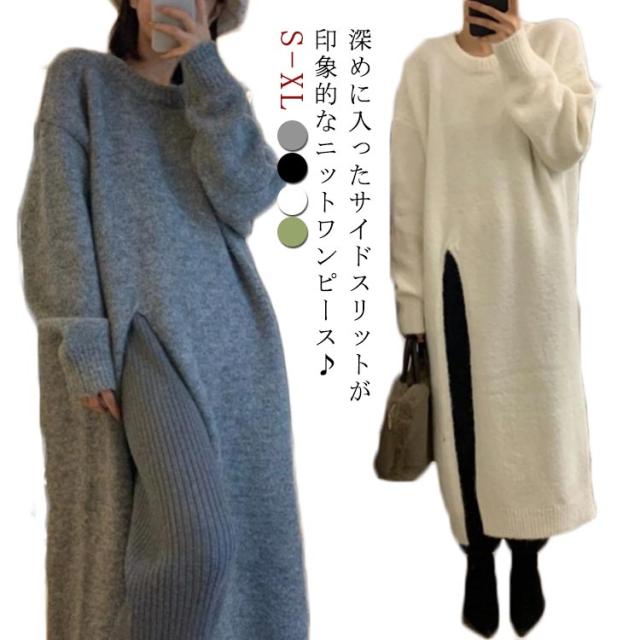 サイドスリットニットワンピース レディース ワンピース ニット 送料無料 スリット 長め ロング 厚手 マキシ きれいめ オフィス カジュアル キレカジ 春 冬 秋