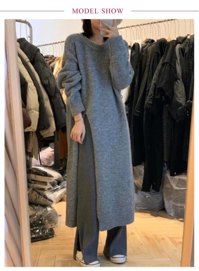 | 深めに入ったサイドスリットが印象的なニットワンピース♪ 単調になりがちなワンピースコーデも、深めのスリットがボトムスをきれいに見せてくれます♪ ゆるっとオーバーサイズのロング丈ながらも重たくならず全体をすっきりと見せてくれます。 デニムパンツやスキニーパンツはもちろん、カラーパンツをチラっと見せるのも◎ | |