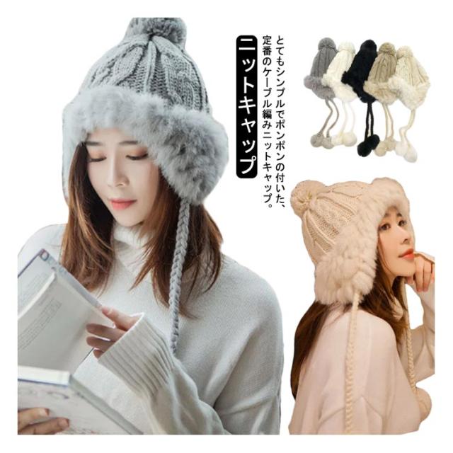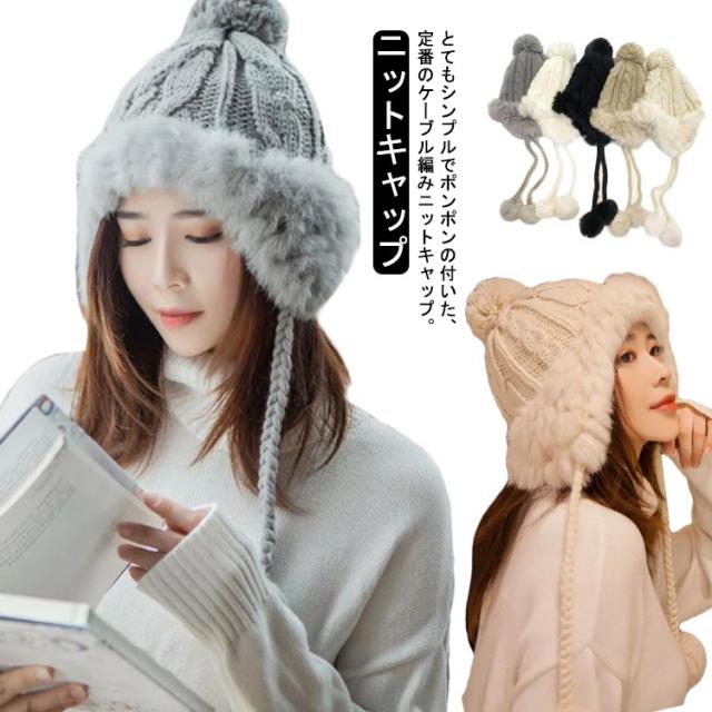 ニット帽 ニット 帽子 レディース キャップ 耳付きキャップ ポンポン ニットキャップ 冬 シンプル 冬物 防寒 可愛い 小顔効果 送料無料 帽子 レディース ファー ニット帽 耳付きキャップ ファー付き ニット帽 ポンポン