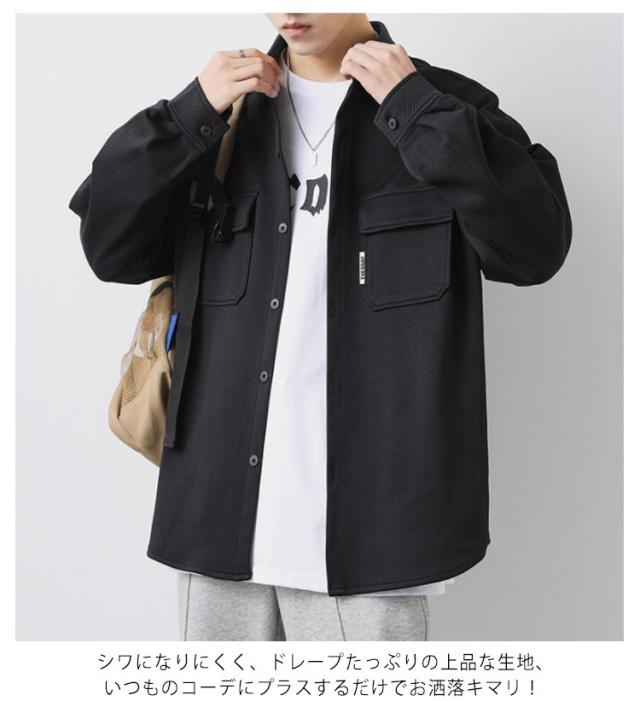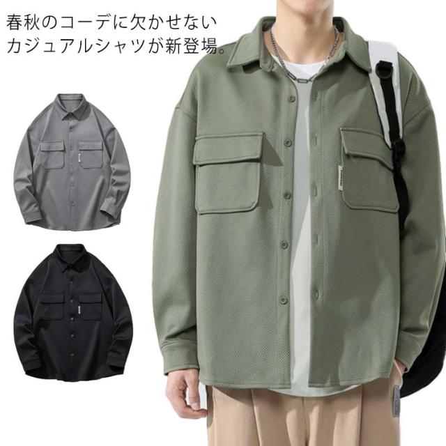 送料無料 カジュアルシャツ 長袖 メンズ シャツ とろみシャツ 無地 ドロップショルダー ビッグシルエット ゆるシャツ ワークシャツ 開襟 トップス 羽織 シンプル カジュアル 春服 韓国ファッション ストリート系 春秋 原宿系