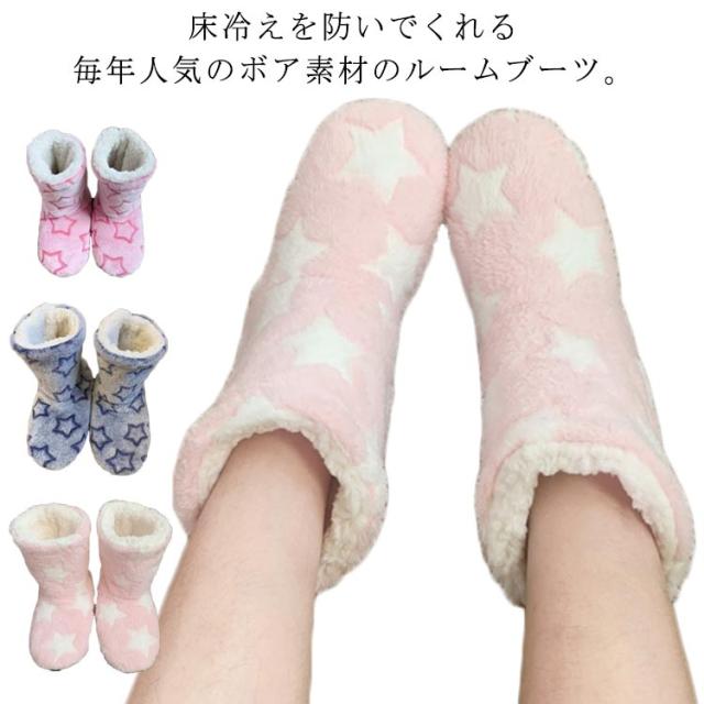 | 床冷えを防いでくれる毎年人気のボア素材のルームブーツ。 柔らかい素材で静音効果も抜群。歩いた時にパタパタとした音が出にくい。 足裏に滑り止めがあり、室内でも快適に過ごせます。 ブーツタイプで高さがあり足首を冷やさないため、長めの靴下を履かなくてもひんやり感を軽減します。 フワフワした肌触りで気持ちよく、暖かみのある素材なので冬季の足元に最適なアイテムです。 | |