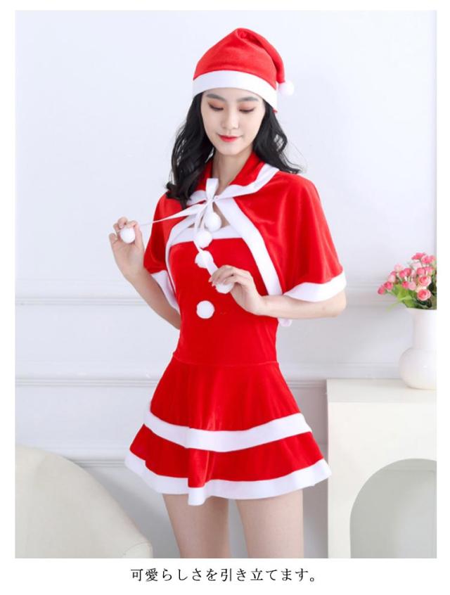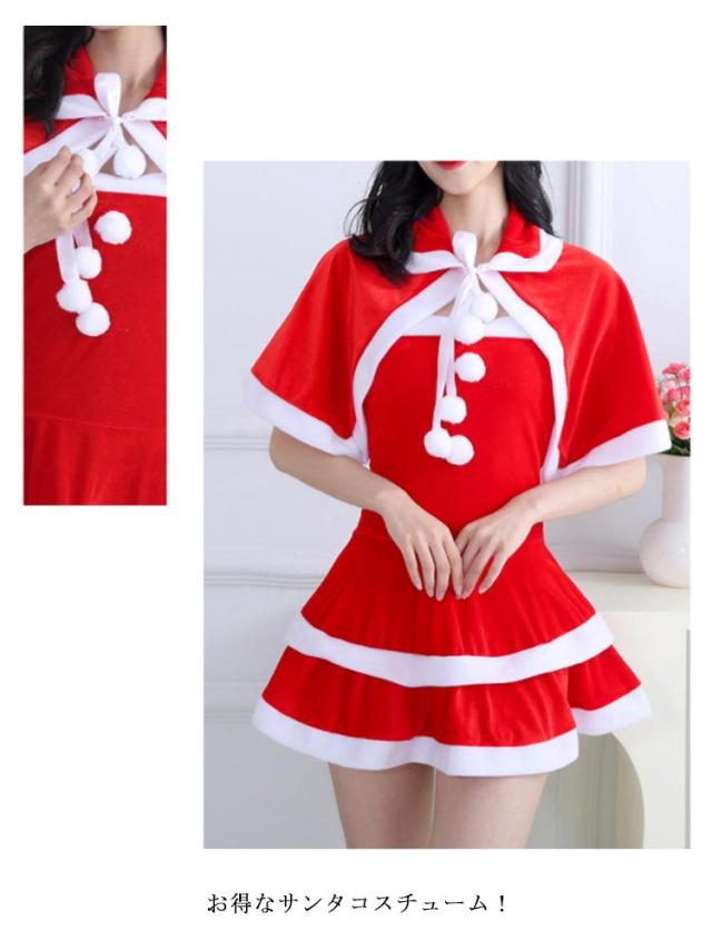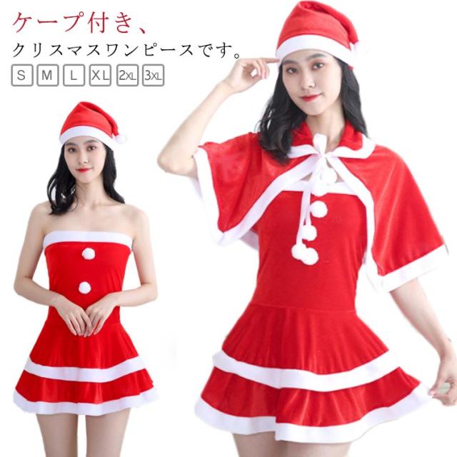 サンタ コスプレ セクシー ワンピース サンタワンピース ケープ付き サンタコスプレ レディース レッド ミニ 長袖 袖無 可愛い クリスマス 衣装 服 大人 サンタ帽子 サンタクロース コスチューム S M L XL 2XL 3XL