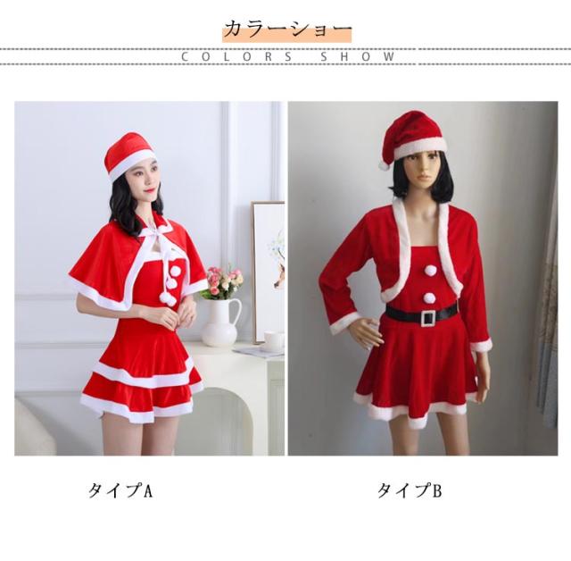 | ケープ付き、クリスマスワンピースです。可愛らしさを引き立てます。 お得なサンタコスチューム! 長袖&袖無しタイプからお選びください。 | |