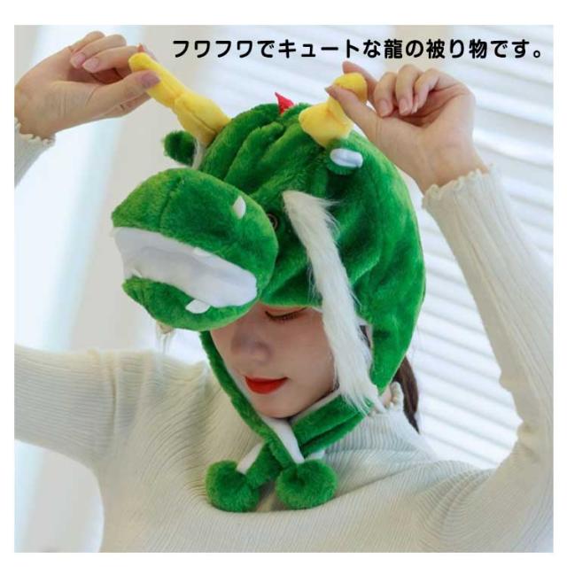 かぶりもの かわいい 干支 帽子 辰 龍 被り物 竜 着ぐるみキャップ 2024年 十二支 アニマルハット ドラゴン コスプレ アニマル帽子 可愛い ぬいぐるみ 龍の帽子 暖かい 恐竜 辰年 動物 仮装 新年 パーティー ハロウィン 撮影 小物 年賀状 プレゼント