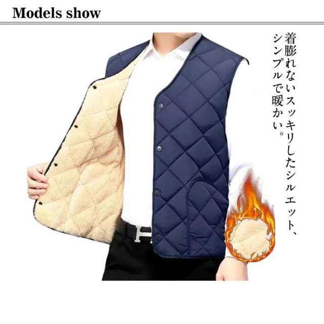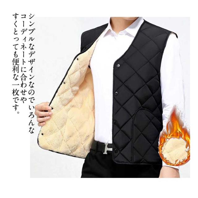 中綿ベスト メンズ 秋冬 裏起毛 暖かい 前開き トップス インナーベスト 防寒ベスト ジレ ベスト 裏ボア 裏起毛 防寒対策 ルームウェア Vネック 暖かい あったか 厚手 Vネック ビジネス 部屋着 散歩 旅行 登山 防寒 保温 軽量 送料無料