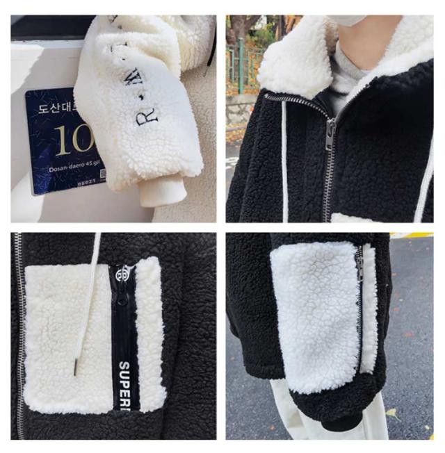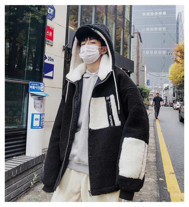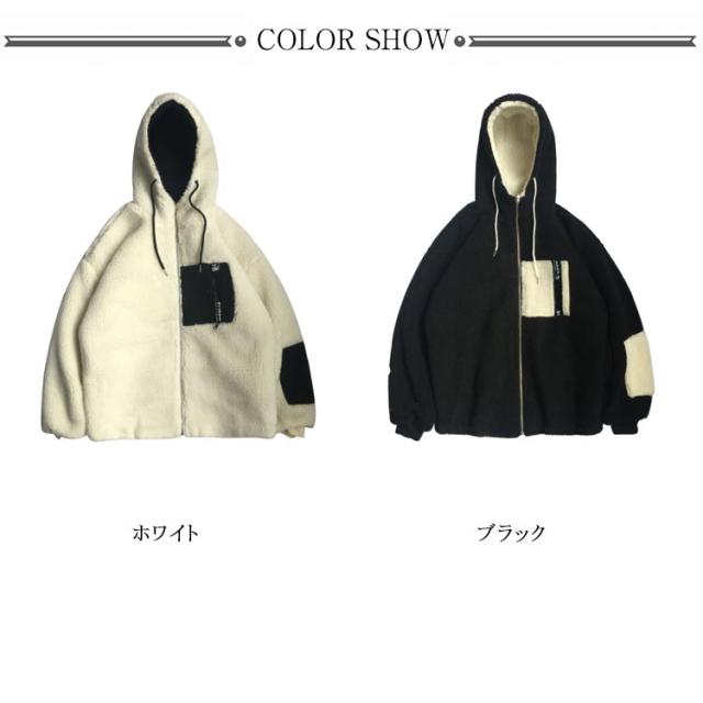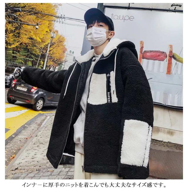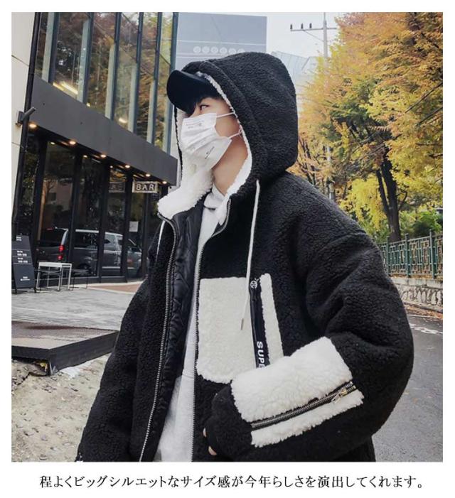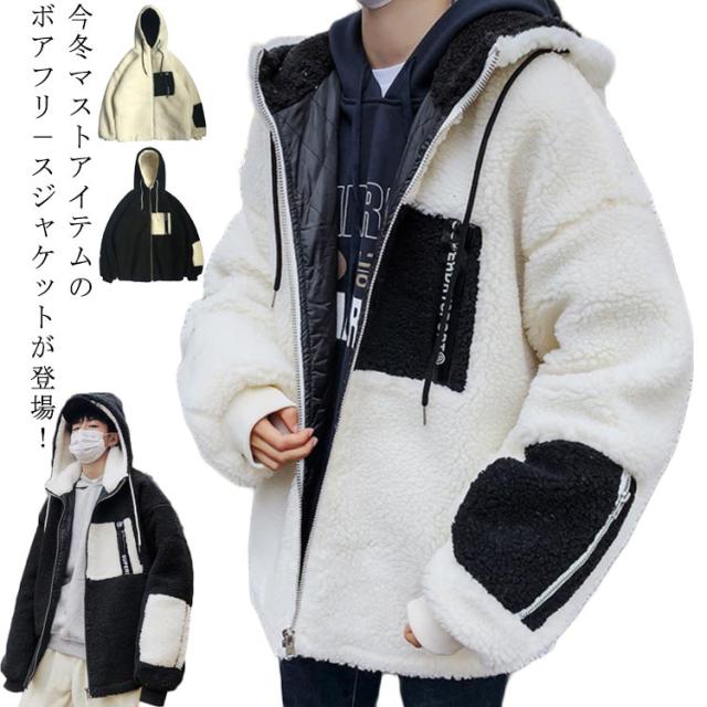 ボアコート メンズ ボアジャケット ボアブルゾン フリースジャケット アウター 防寒 厚手 長袖 前開き ジップアップ フード付き 男子 ゆったり カジュアル 冬 全2色
