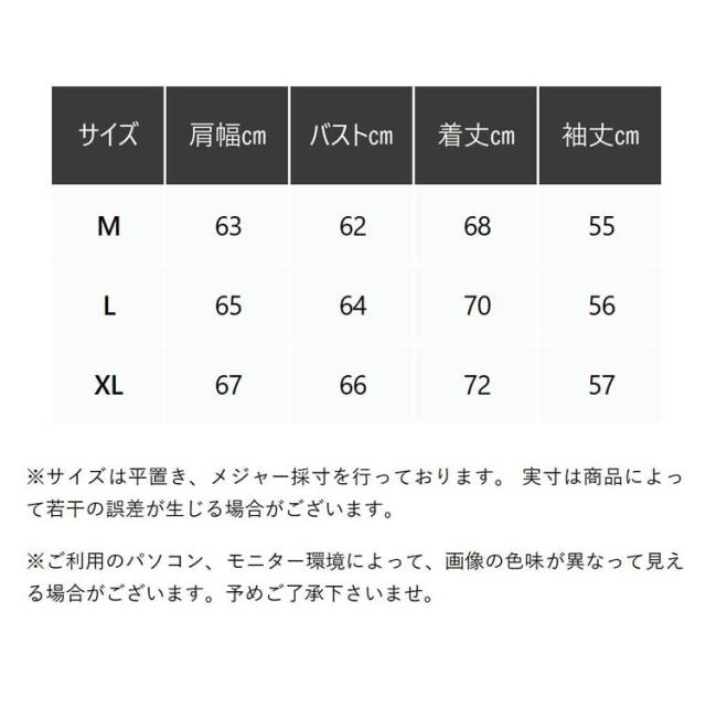| サイズについての説明 | 【サイズ】画像を参照お願い致します。 ※上記サイズは平置き実寸になります。 サイズ表の実寸法は商品によって1-3cm程度の誤差がある場合がございます。 |