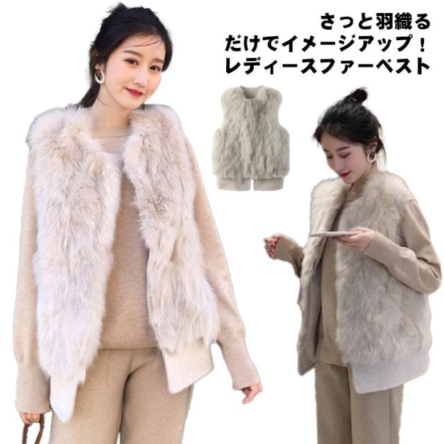 ベスト レディース 秋冬 ファーベスト フェイクファー エコファー 羽織 ライトアウター ショート丈 おしゃれ ノーカラージャケット ファージャケット ノースリーブ ジレ レイヤード 重ね着 ミドル丈 秋冬春 ふわふわ もこもこ 韓国風 きれいめ カジュアル 送料無料