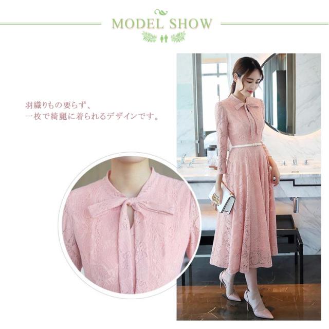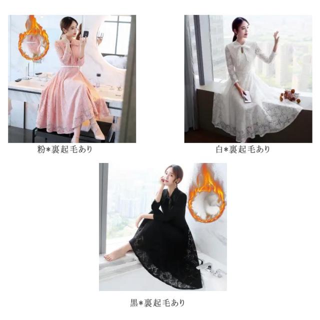 総レース ワンピース 裏起毛 フォーマルワンピース パーティードレス 結婚式 ワンピース スタンドカラー リボン 入園 入学式 卒業 卒園式 七五三 20代 30代 40代 50代 春 秋 冬 裏起毛なし S M L XL 2XL 3XL