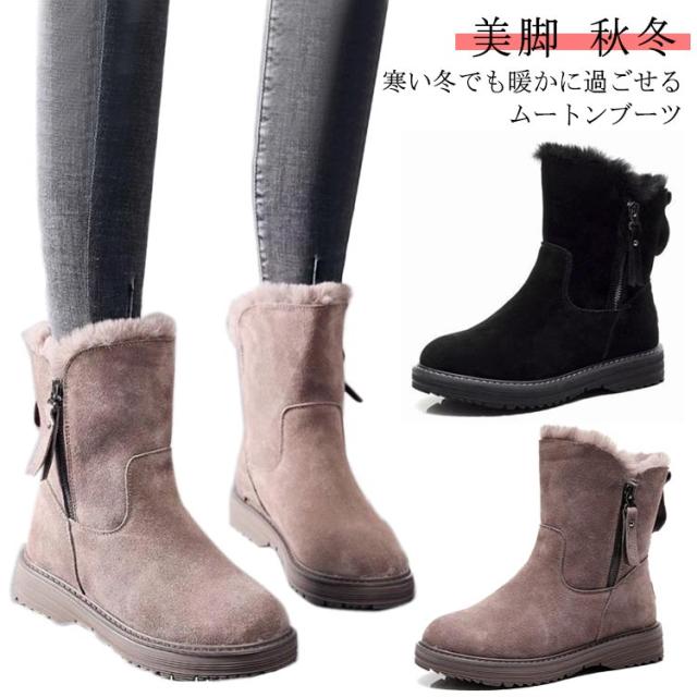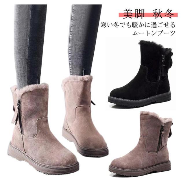 ブーツ レディース 歩きやすい スエード ムートンブーツ 裏起毛 暖かい 冬 スノーブーツ 雪靴 おしゃれ あったか スノーシューズ エコファー ミディアム丈 ブーツ 防寒 裏ボア モコモコ 秋冬 滑り止め カジュアル 無地 シンプル 通勤 通学 ギフト プレゼント 送料無料