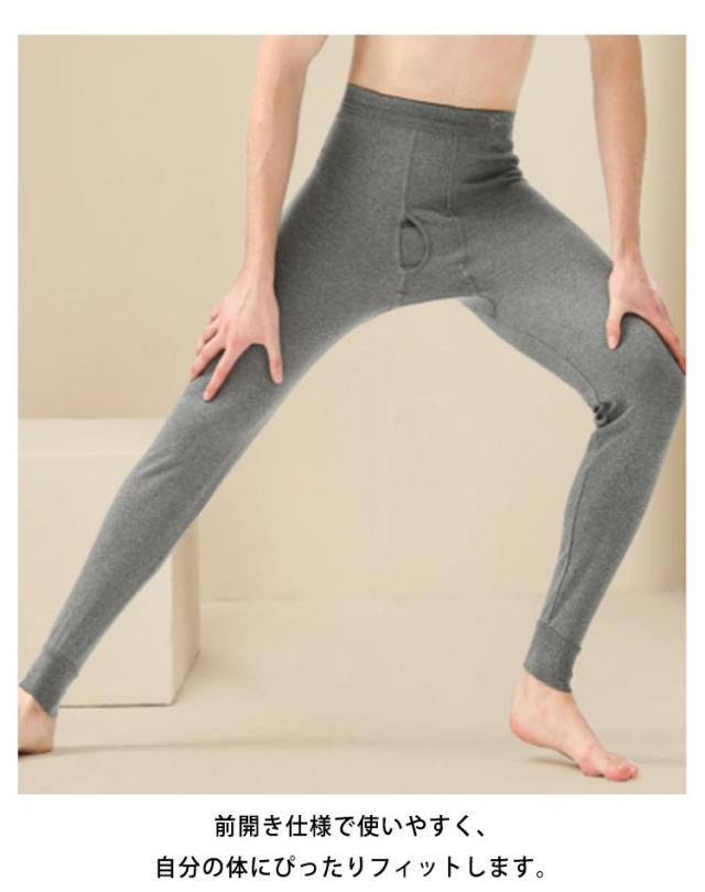 あったか タイツ 防寒 防風 10分丈 綿混 アンダーウェア 丸編み 前開き 大きいサイズ 保温 レギンス インナー 男性 下着 ビジネス 暖かい ストレッチ 無地 送料無料
